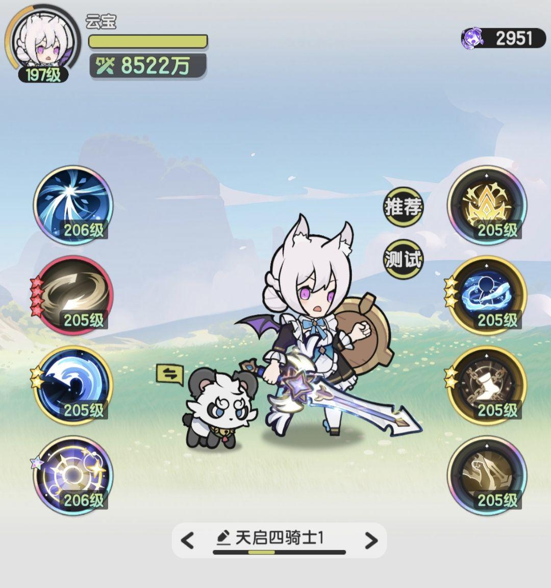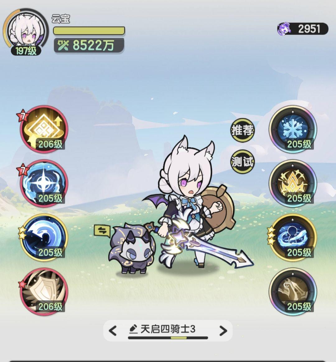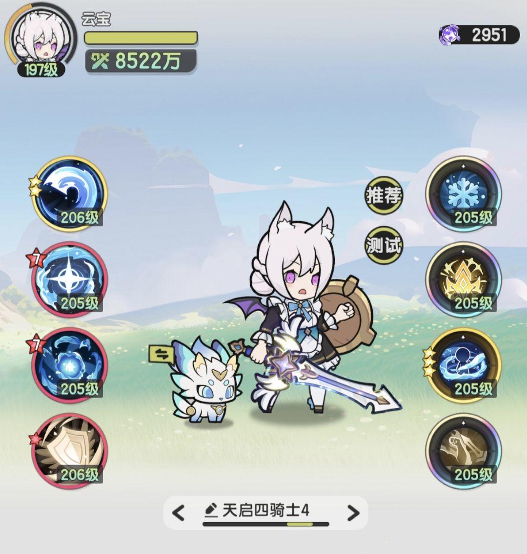 整活:抓四个骑士组天启四骑士,通过潮汐圣印来打伤害,1号来给对面挂致残,2号携带寒缚之息,3号和4号打伤害,且四骑士都携带潮汐圣印和水系技能。
