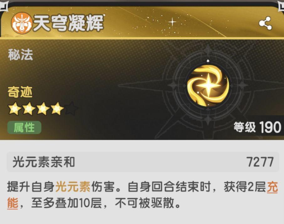 天穹凝辉:只能给耀光灵刃增伤的技能,一回合两层,需要五层充能才能增伤(提升耀光灵刃50%伤害)一次,这种专属增伤触发条件这么苛刻,且对比神恩蓄锐和神圣节奏的增伤也不突出,说白点哪怕每回合都能满充能我都不见得会用。