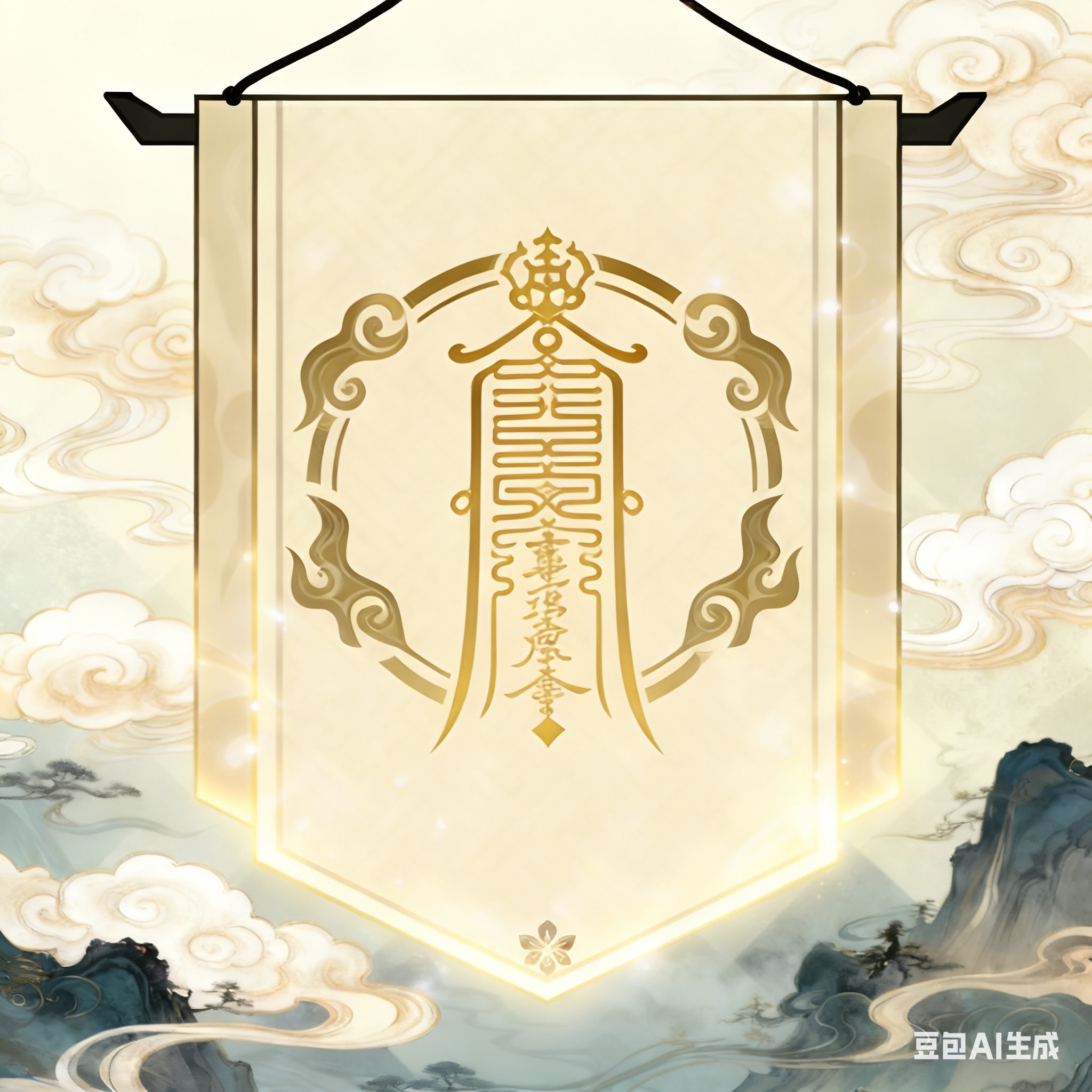 以道家符箓为核心纹样,融合中式卷草纹勾勒轮廓,搭配祥云山水底韵,借传统符箓寓意祈福纳祥,萃取东方美学与道教文化为设计灵感。