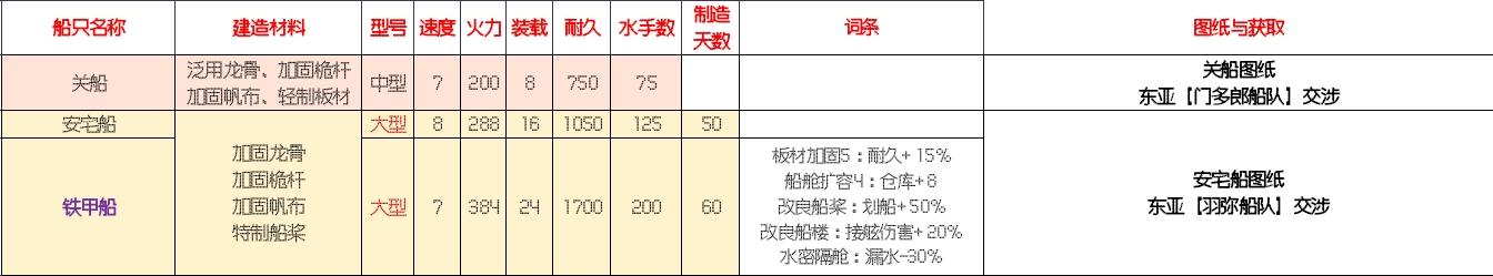 船只攻略如下: