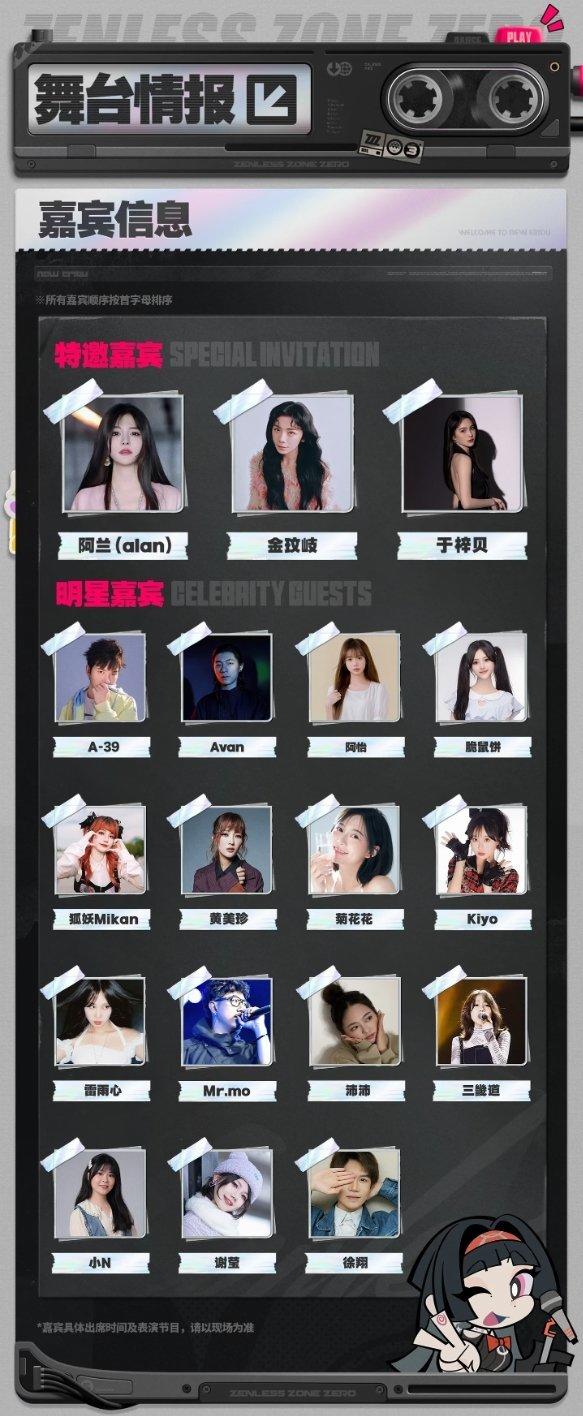 本次演出将特邀阿兰、金玟岐、于梓贝参与演出,另有15位演出嘉宾,以及若干工作人员,共同完成17个节目。