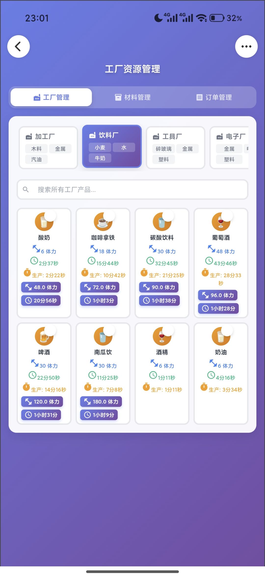 饮料☞酸奶(但是缺牛奶也缺酵母),所以我一般再造些咖啡拿铁(也要牛奶)和碳酸饮料,这俩性价比都还行,所以也需要玻璃和塑料