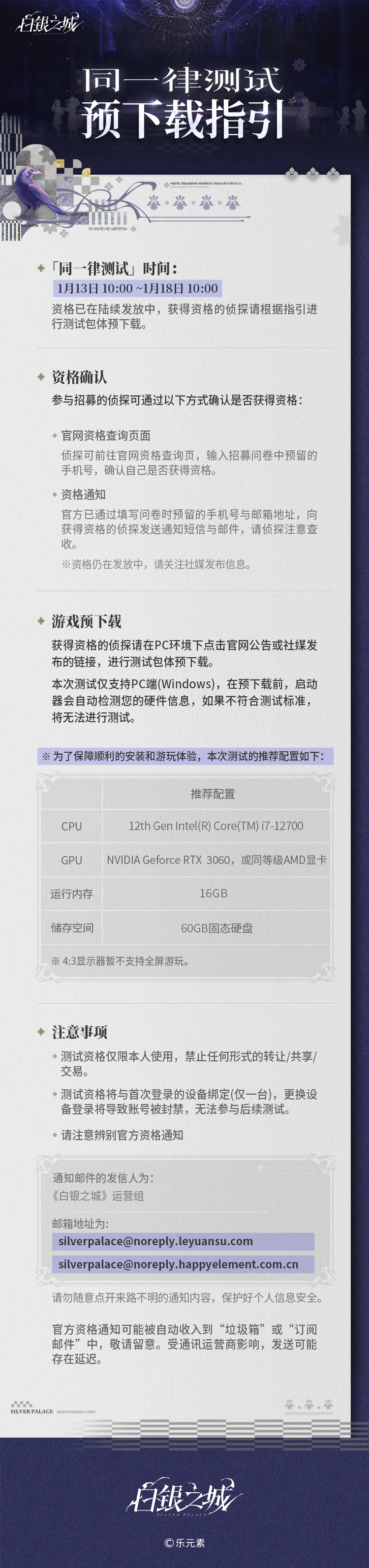 原因据悉为本作首次封闭测试「同一律测试」已正式定档,从官方的公开信息中可以得知,此次测试将于2026年1月13日上午10:00开启,持续至1月18日上午10:00