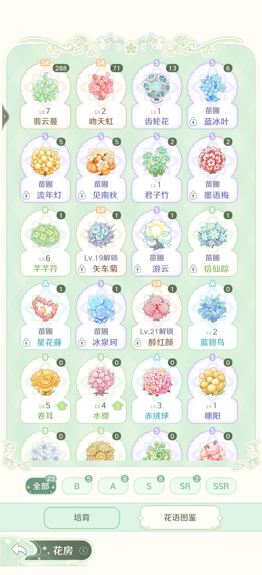 ④花语图鉴的升级都是零零散散的,希望官方可以将可以升级的统一挪到最前面(醒目!)