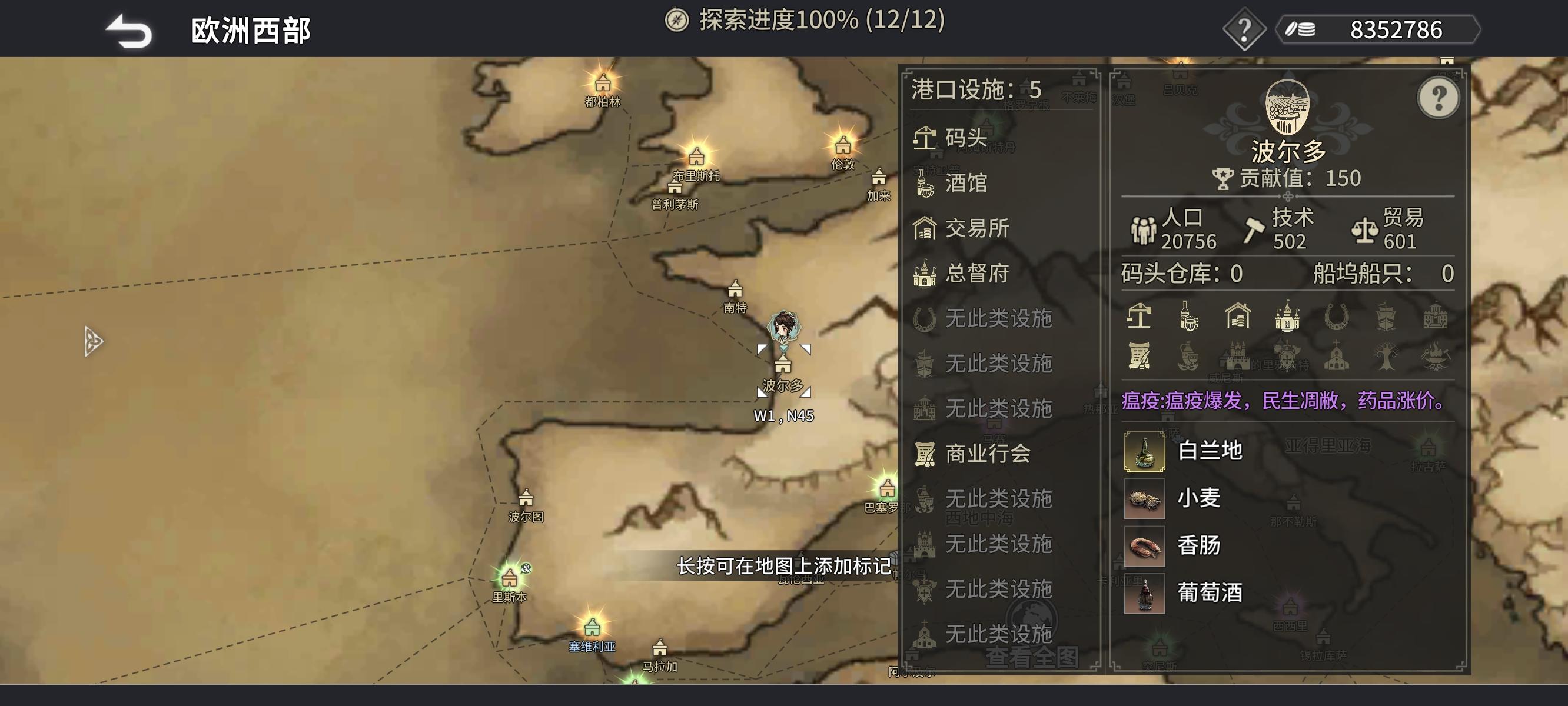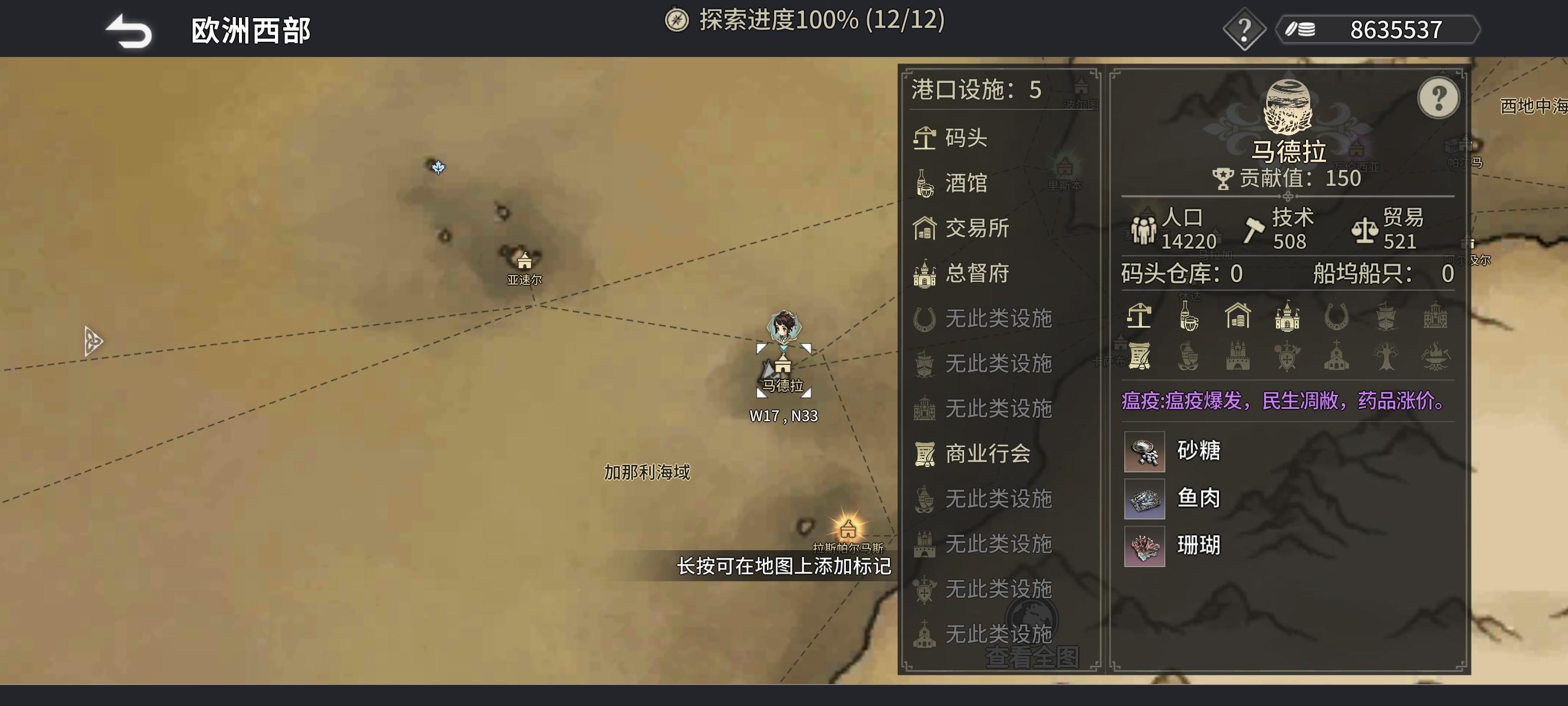 特殊设施:道具店,酒馆(朱莉安),图书馆(荷兰语/豪萨语/葡萄牙语/拉丁语/英语/希腊语/西班牙语),驿站(探索),造船厂
