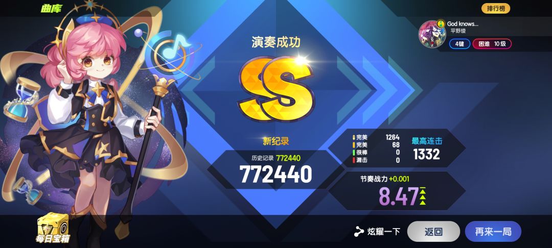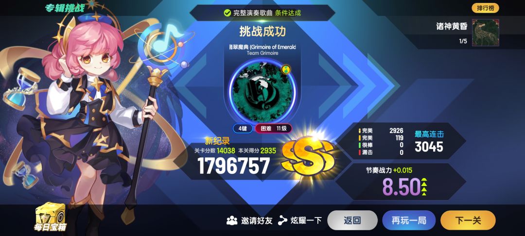 我左思右想,恍然大悟,心境是可以大幅影响底力的,如果心如明镜,念头通达,那么难题就不算是难题,魔王谱也不算是魔王谱,随心而动,顺天而行。