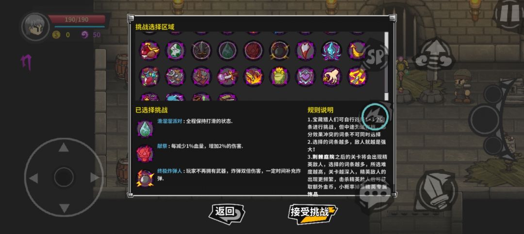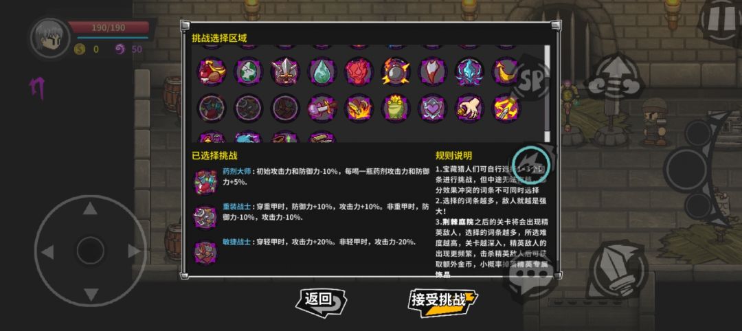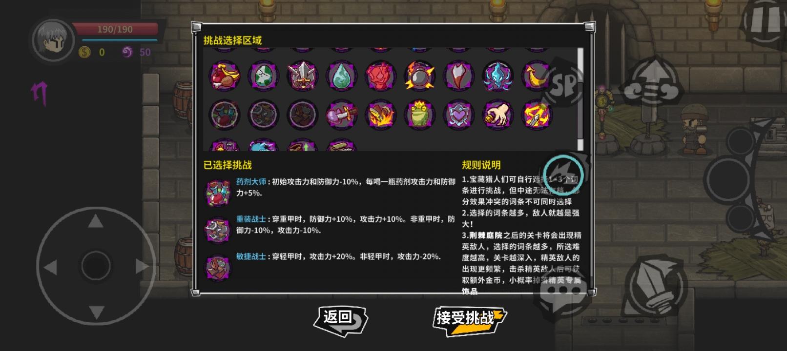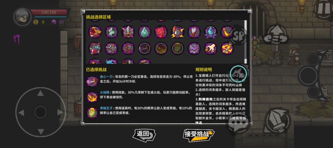 出牢房,进大厅,往左走,中间金色大骑士,对话,自选因子,点一次勾选,再点一次取消,感觉每日挑战太难可以自选因子,积分正常给。