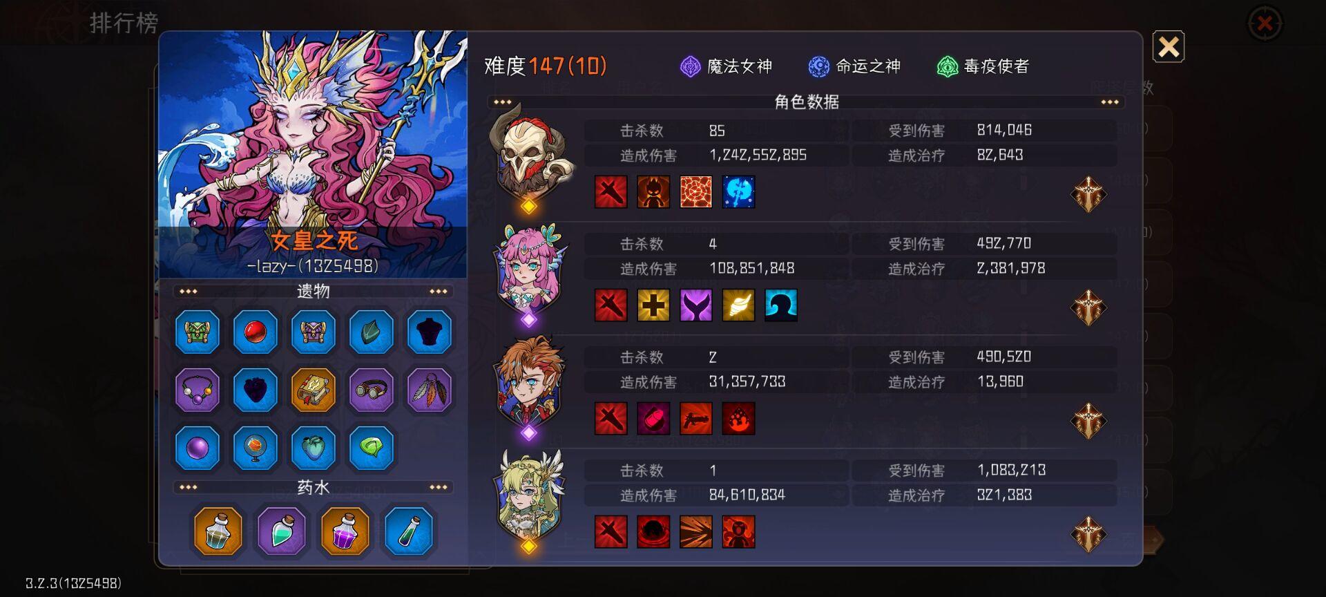 但150带神眷和147无神眷比是要容易的所以放的是147的视频,有俩回合人鱼和跳跳一起被睡了,实际3t杀150boss