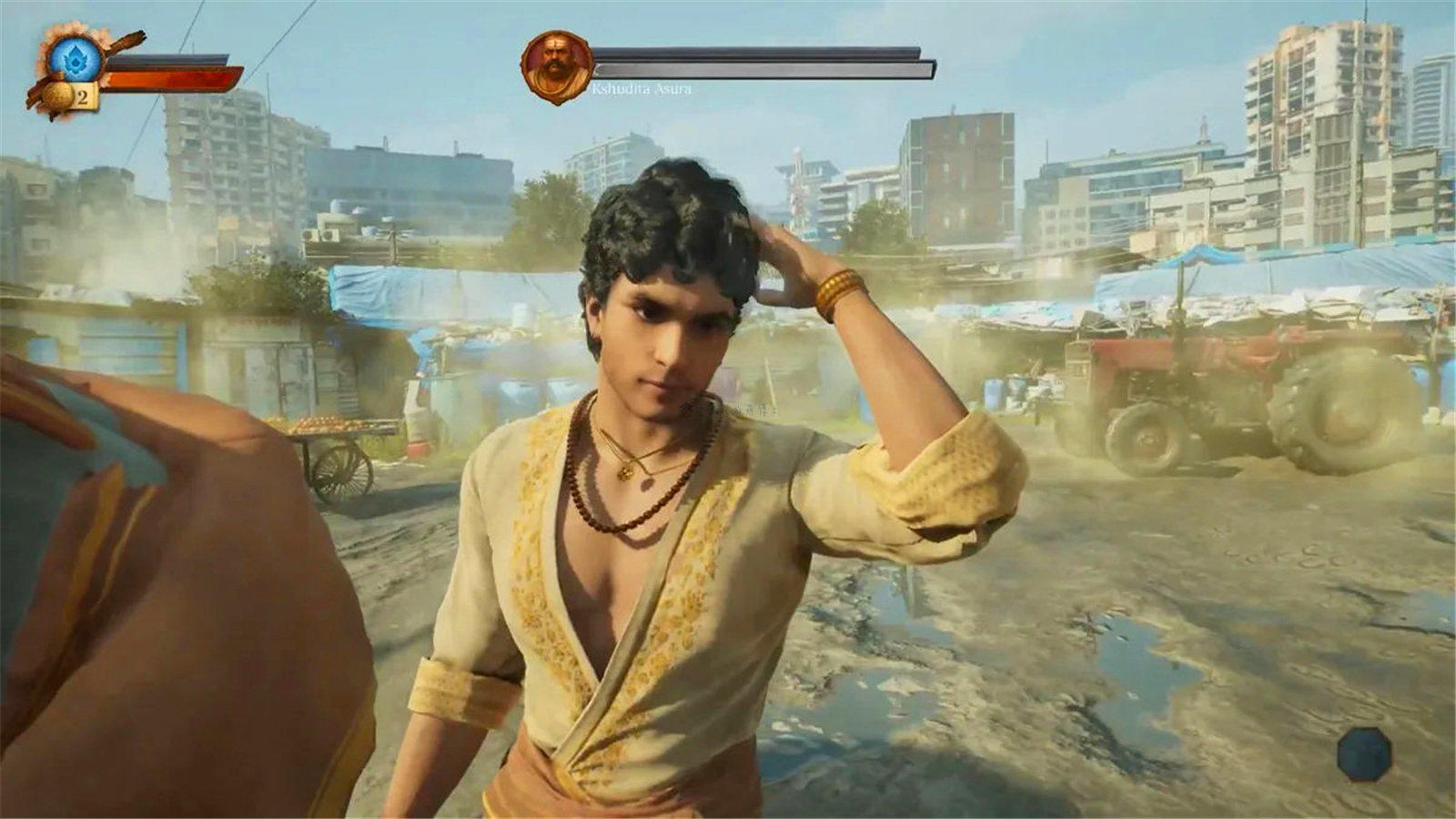 这一幕让玩家们也倍感熟悉,有人大呼:“印度3A大作”!想必大家和博士一样,都记得去年有一款名为《释放阿凡达》的印度“3A大作”实机演示视频横空出世,火爆异常。之所以火出圈,并不是因为玩法出众或是技术惊人,而是主角在与敌人的对战中,也会“拨弄一下头发”。网友们戏谑称之为“宫崎英高永远设计不出的动作”!