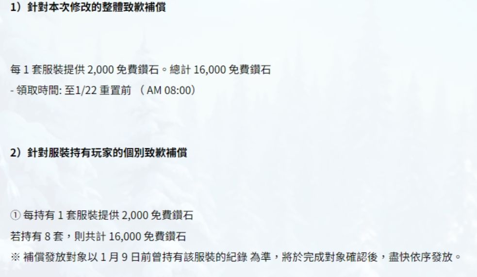 官方解释,角色调整是因收到外部修改警告,为避免服务中断风险而作出的选择,但承认沟通不足、说明含糊是核心问题。补偿方面,全体玩家可领取100张通用抽抽券 + 16000钻石,服装持有玩家额外获对应钻石补贴,强化服装玩家可申请退款,返还钻石及消耗材料。