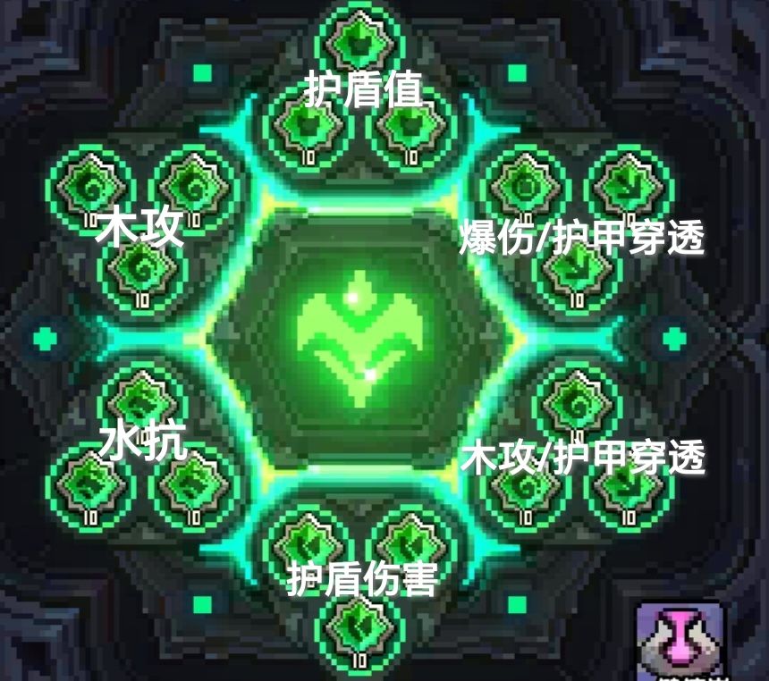 稀有属性选择(技能共鸣18级前):属性压制>伤害增幅≈技能等级>克制增幅/护盾伤害>木攻>攻击强度