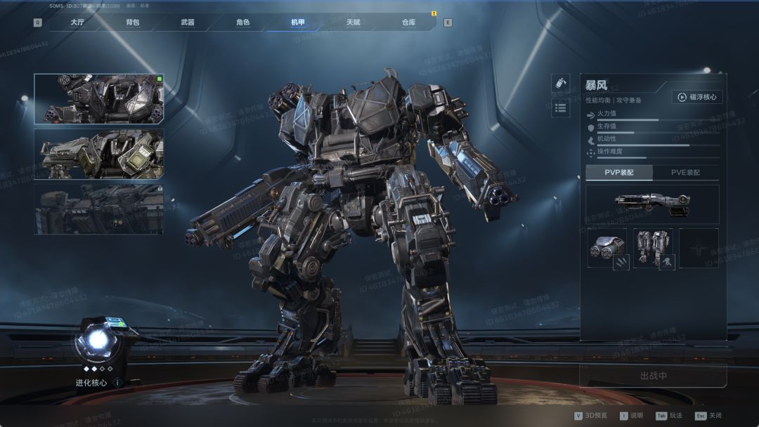 每一台机甲均可自行改装,逆行者们可通过右侧点击PVP/PVE装配进入机甲武器/战术挂件/辅助挂件/专属挂件的配备中。