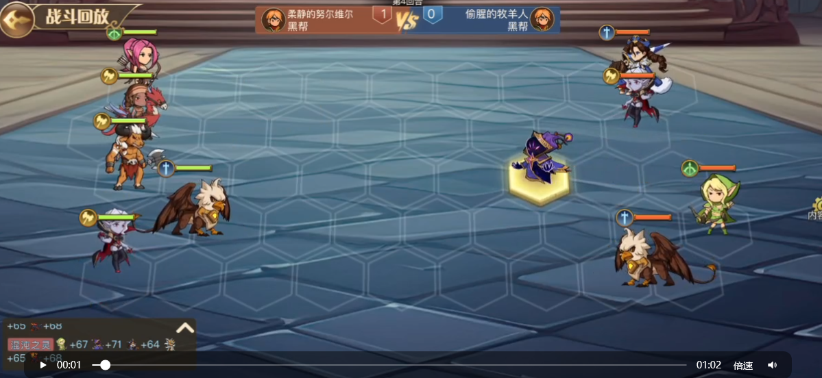 对面的牛头人选择移动集火我放出来的肉盾狮鹫(实际上也没多肉),牛头人的数据没有套装效果,只有7级全套宝石,对面的灰羽最后行动(我的元素使选择了卡格子行动,超出了五格距离)选择收割掉了我的狮鹫