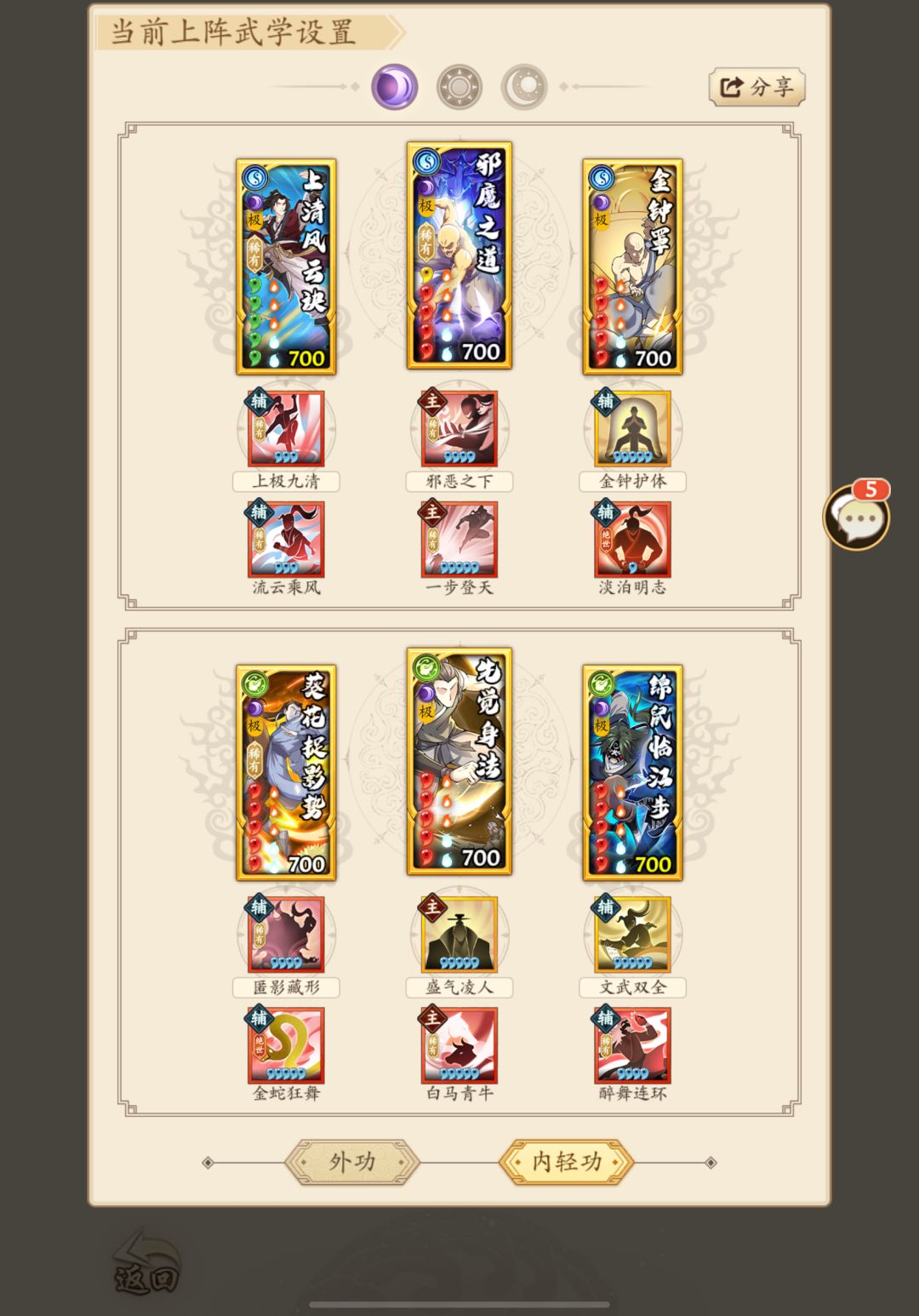5号位备选招式:鸾翔凤集/与世无争替换为佛心自现(控速,招暴,前提是56不连动)/其他。