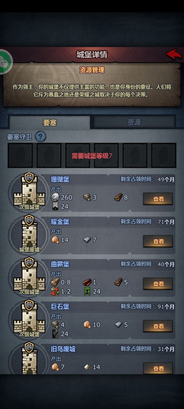 已占领次级城堡 :珊瑚 耀金 曲薪 巨石 旧岛废墟