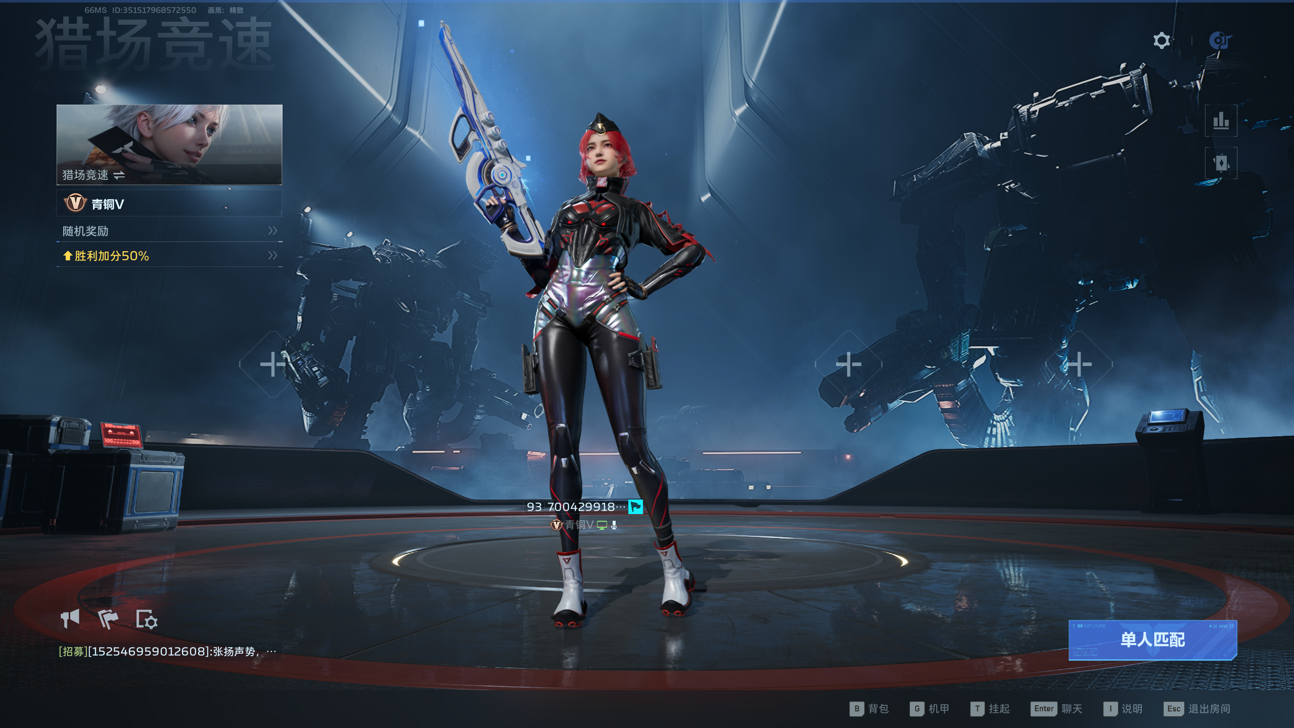 2、 模式介绍:机甲战分为匹配赛与排位赛,匹配赛不结算排位分,可以根据胜负关系和赛季等级获得随机奖励,排位赛胜利后会获得排位分,排位分可以提升段位,段位分为青铜、白银、黄金、铂金、钻石、大师、战神、巅峰战神,每个段位都有奖励,可以获得枪械皮肤、荣誉点、限定头像框、限定名片、传说钛金跃迁秘藏等奖励。段位越高奖励越丰厚。