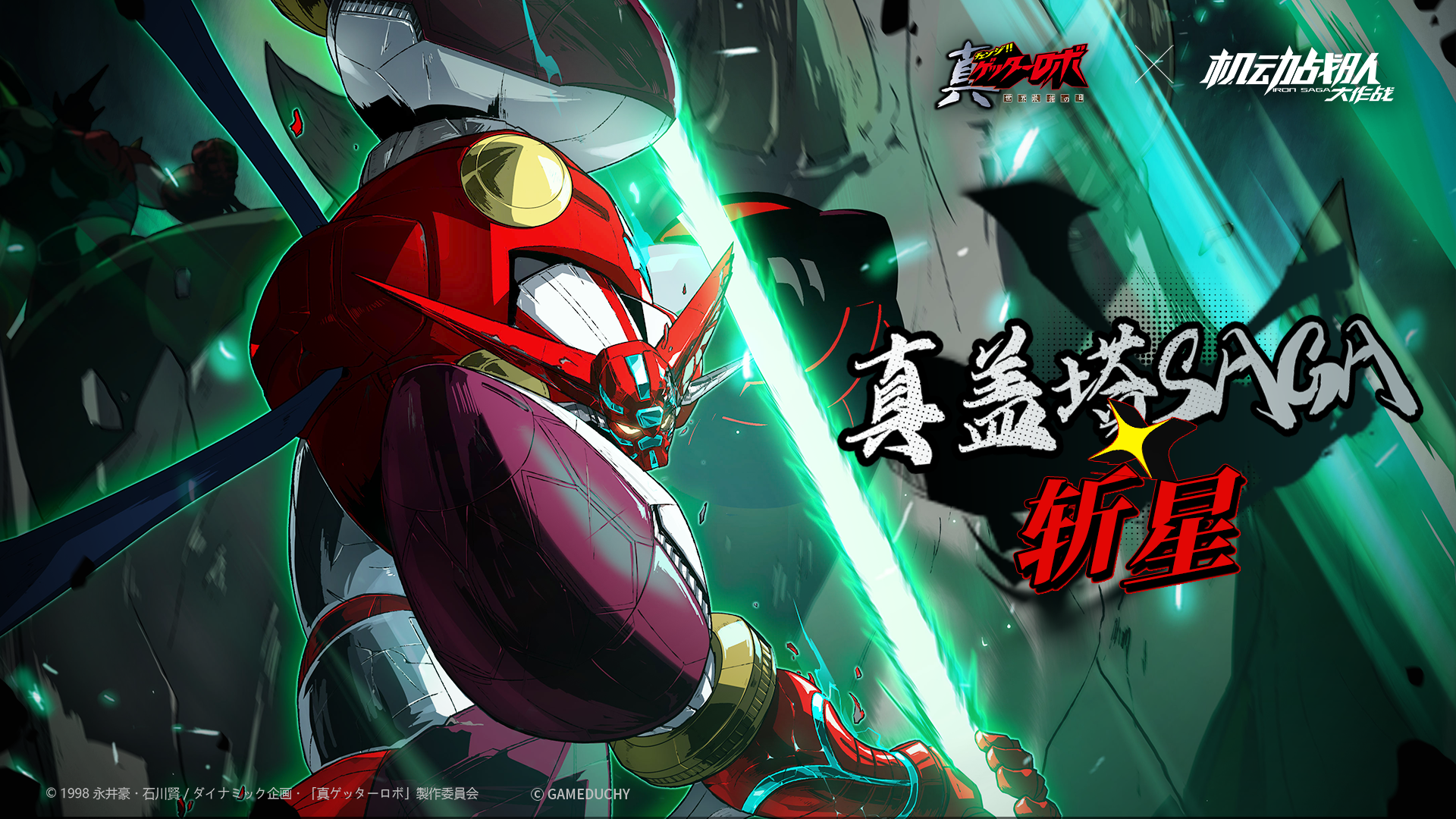 「真盖塔SAGA·斩星」:经历了超出极限的死斗之后,真盖塔完成了新的进化,挥动的盖塔巨斧,将在热血的力量中化作切断星辰的利刃!