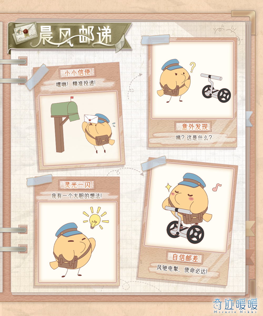 神秘藏书室中收藏着不少与史丢丢有关的书籍,《晨风邮递》正是其中之一!收集神秘碎片,拼贴史丢丢留影,免费收集元气信使套装与精美史丢丢贴纸吧~