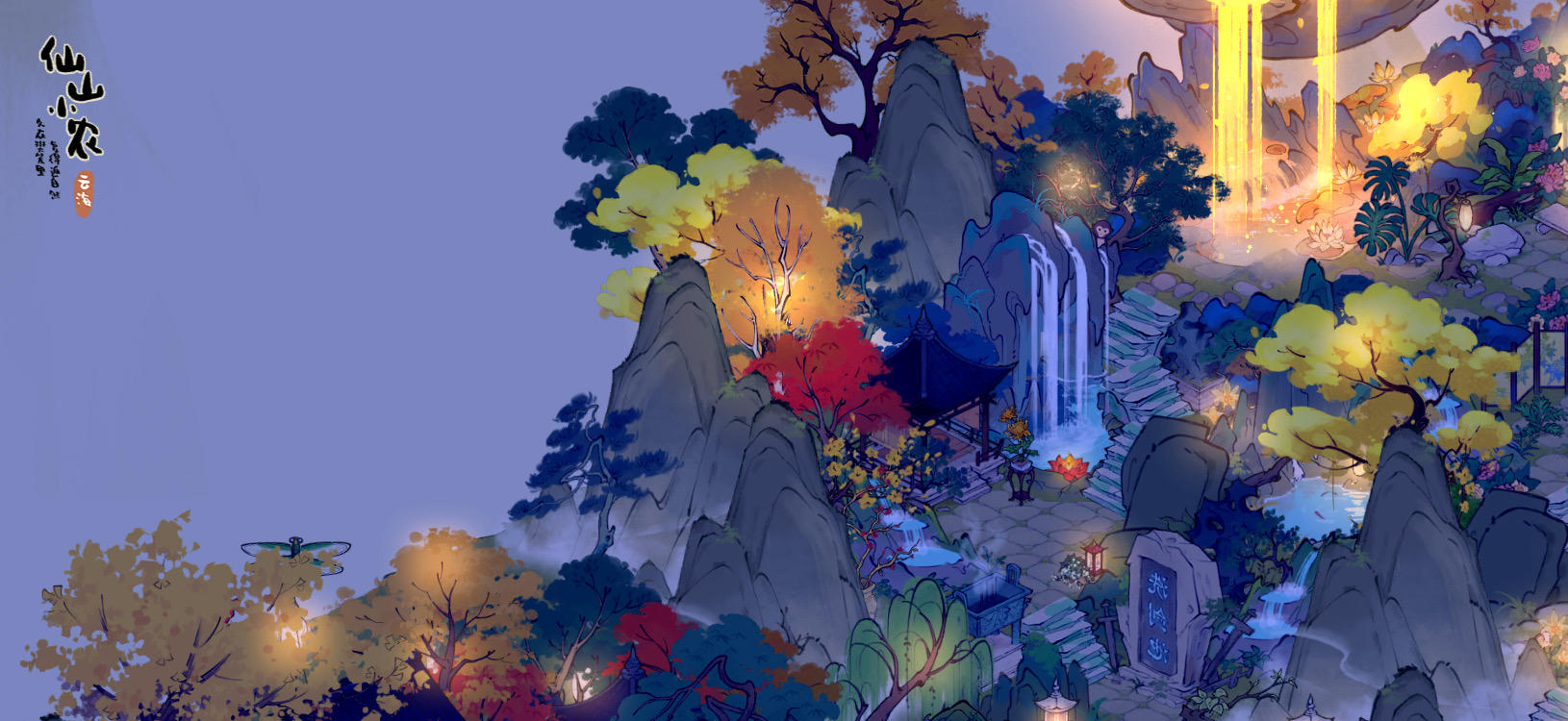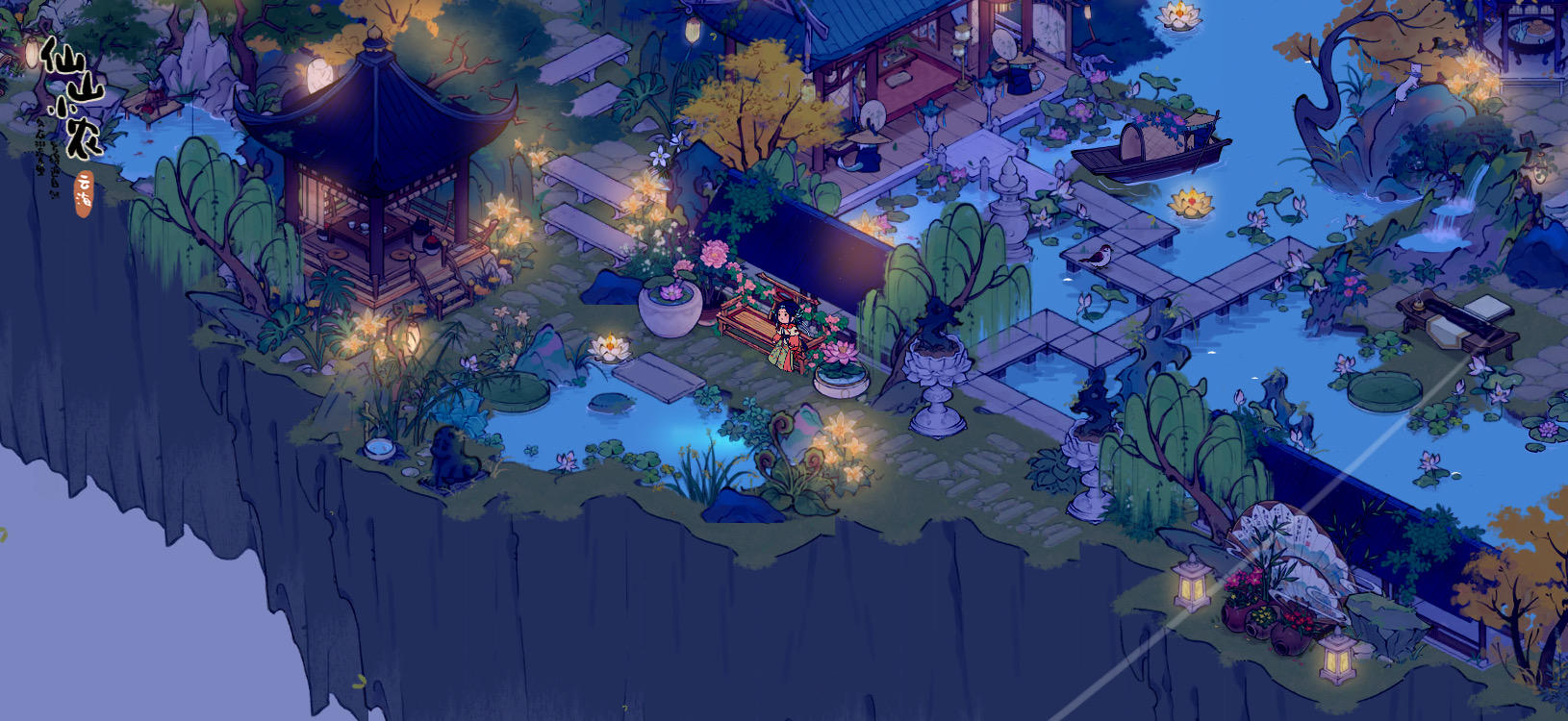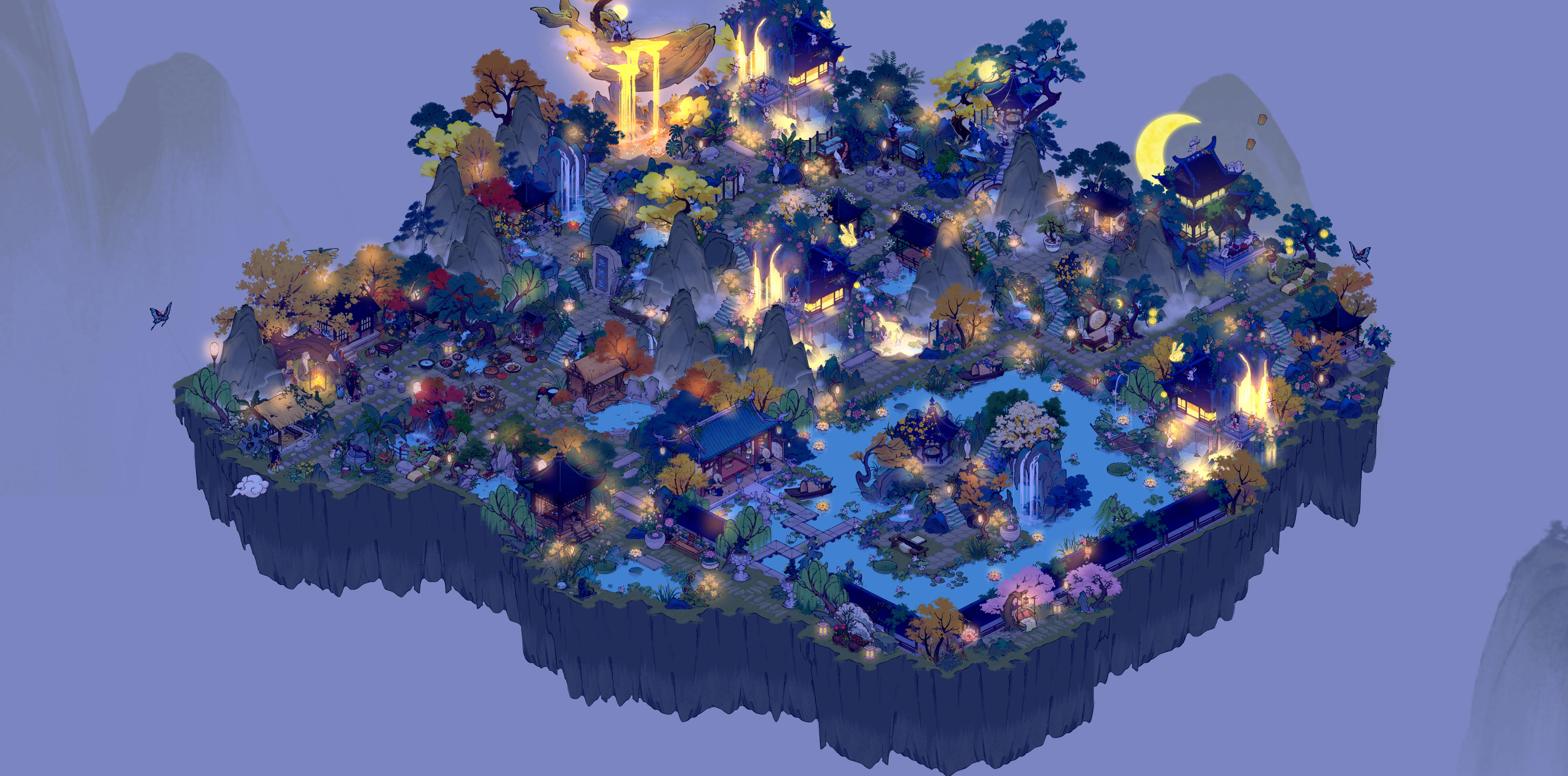 我最初给星星的想法是:有个蜿蜒上山道,山上有个赏月亭可以举杯邀明月。山下是啥没想好。中心想法是:这一整个山头是我家的,然后我家有山有水有小桥连廊园林。