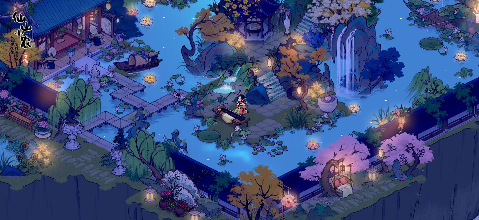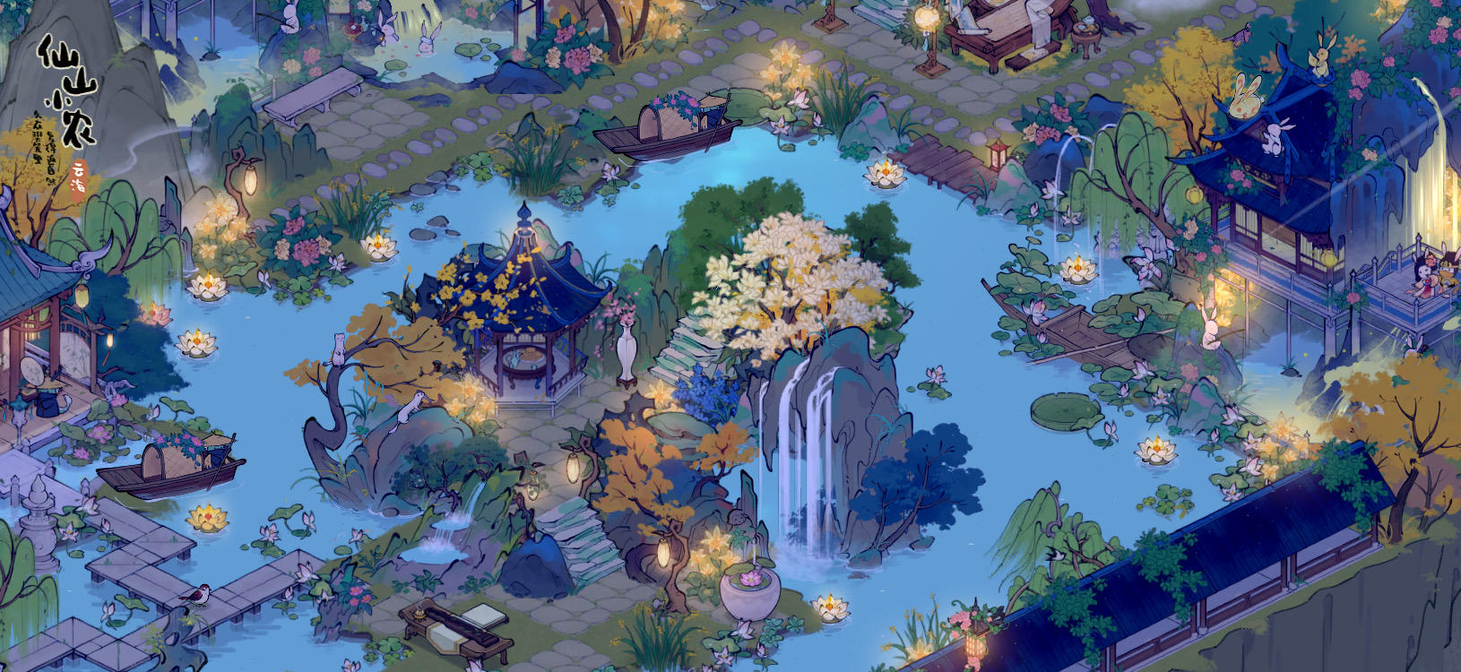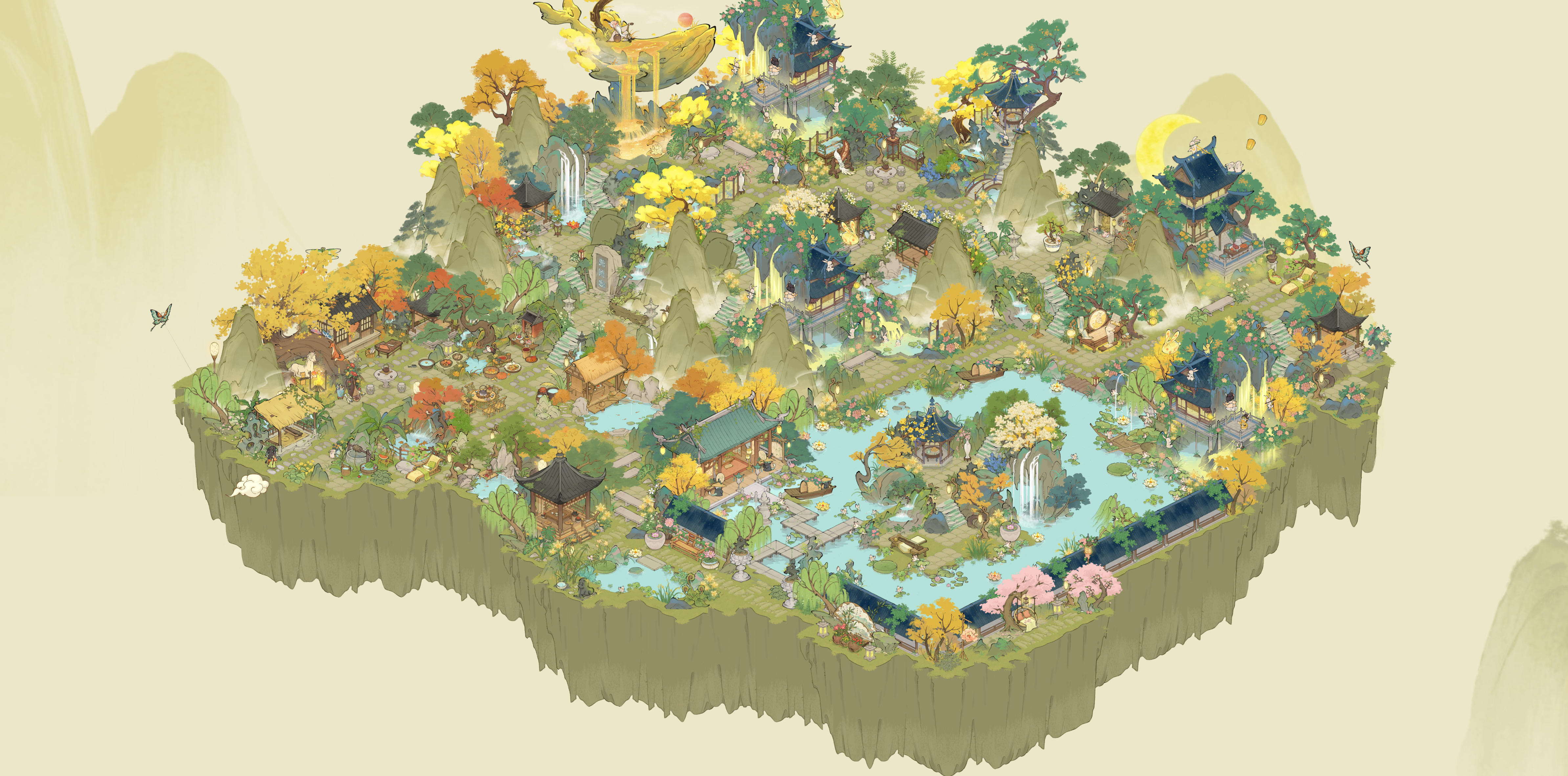 我最初给星星的想法是:有个蜿蜒上山道,山上有个赏月亭可以举杯邀明月。山下是啥没想好。中心想法是:这一整个山头是我家的,然后我家有山有水有小桥连廊园林。