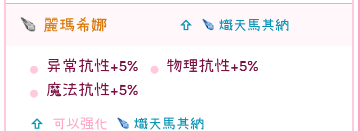这俩是主角,单独拎出图片参考属性,丽玛希娜提供双抗的同时,提供异抗。