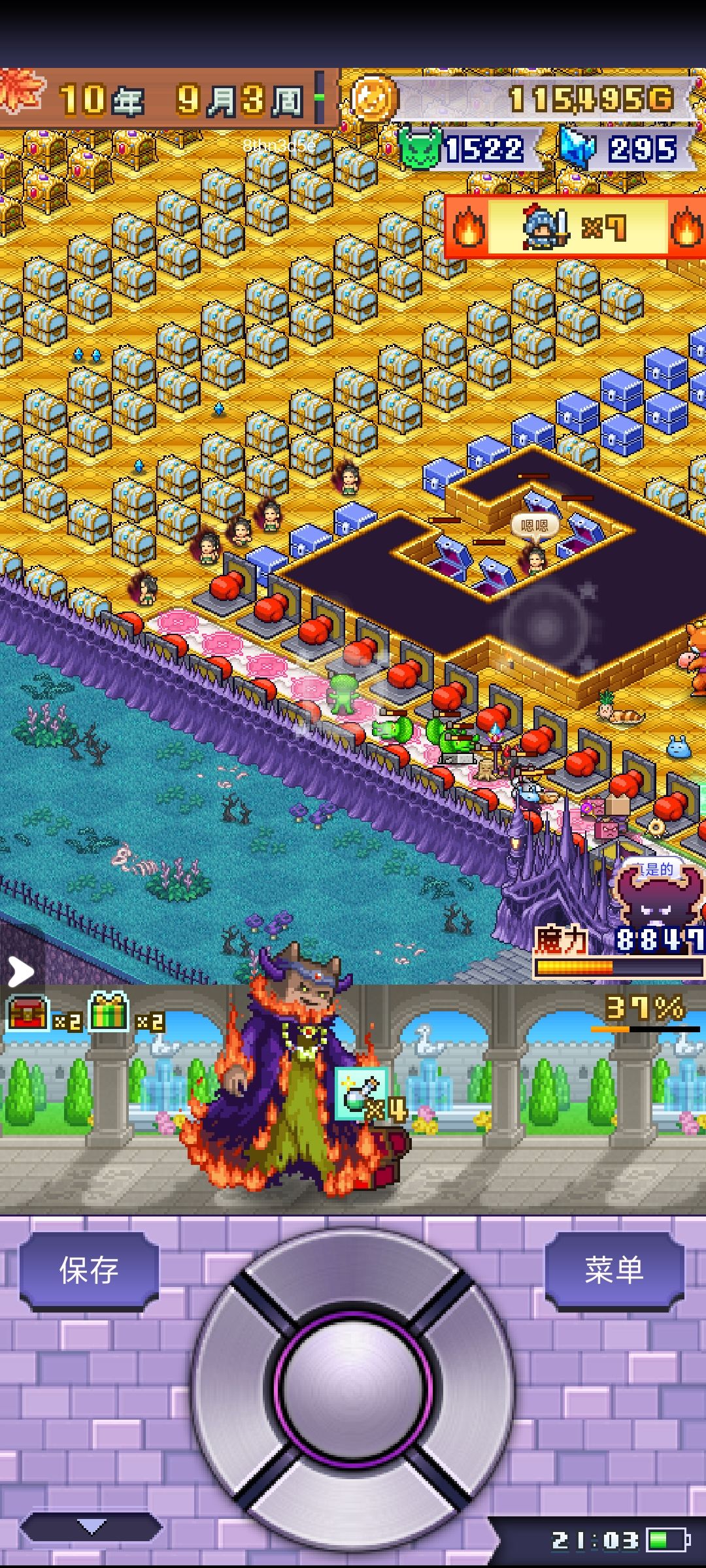 先说结论,和魔王同一个房间的宝箱,在魔王死前冒险者没办法打开,所以可以弄个超大房间,排好宝箱,再多分一个小房间放点低级箱子勾引冒险者踩一波陷阱,在拿完小房间的宝箱后还会回去再踩一轮陷阱,不用担心漏怪
