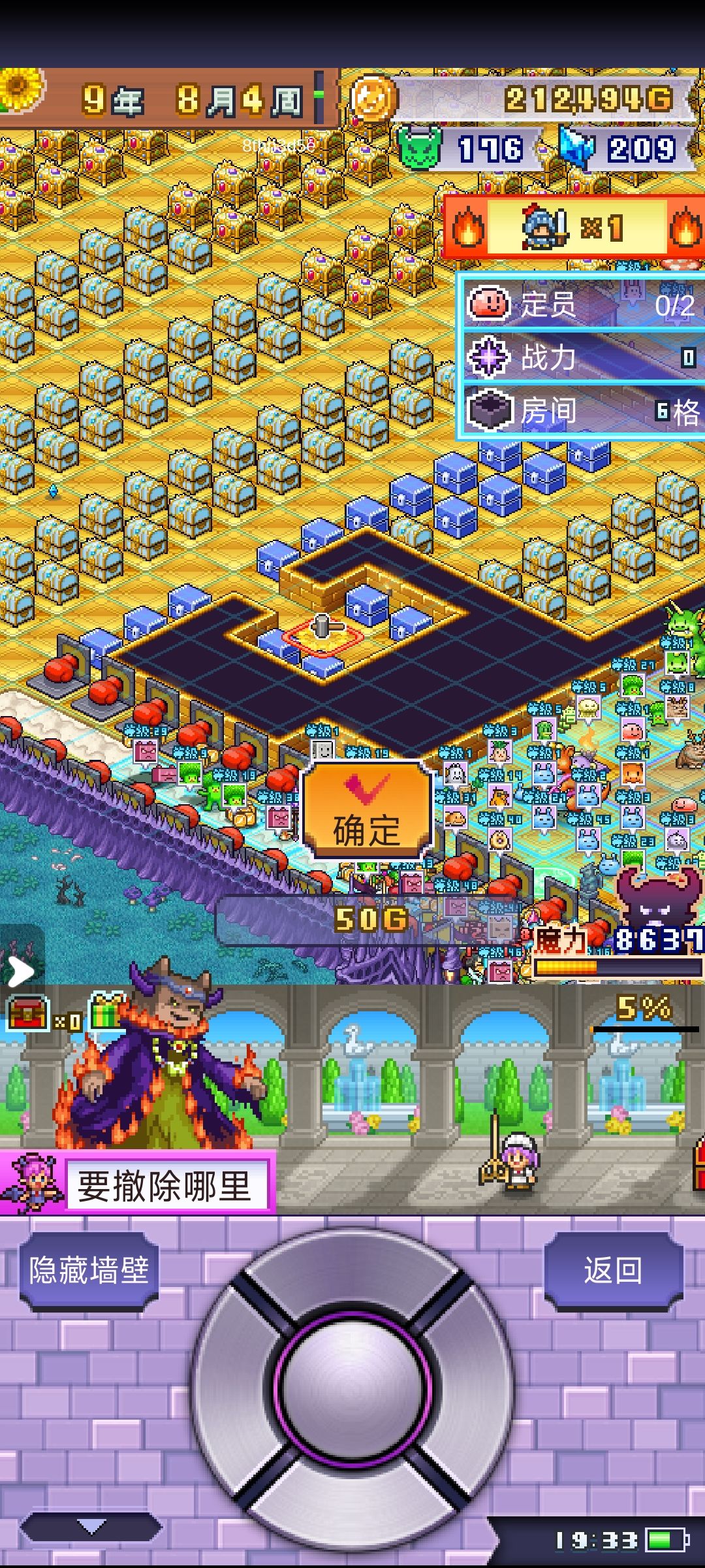 需要高级拳套打断攻击和主要输出,再加一个会治疗的单格魔物,我拉了个不进化的歪罗,魔王死了直接复活,不用担心魔王死了亏钱,我小房间就放了四个白银,就算死了也只是-50%当前金币和1200,和50000多宝箱度的收益完全不算什么