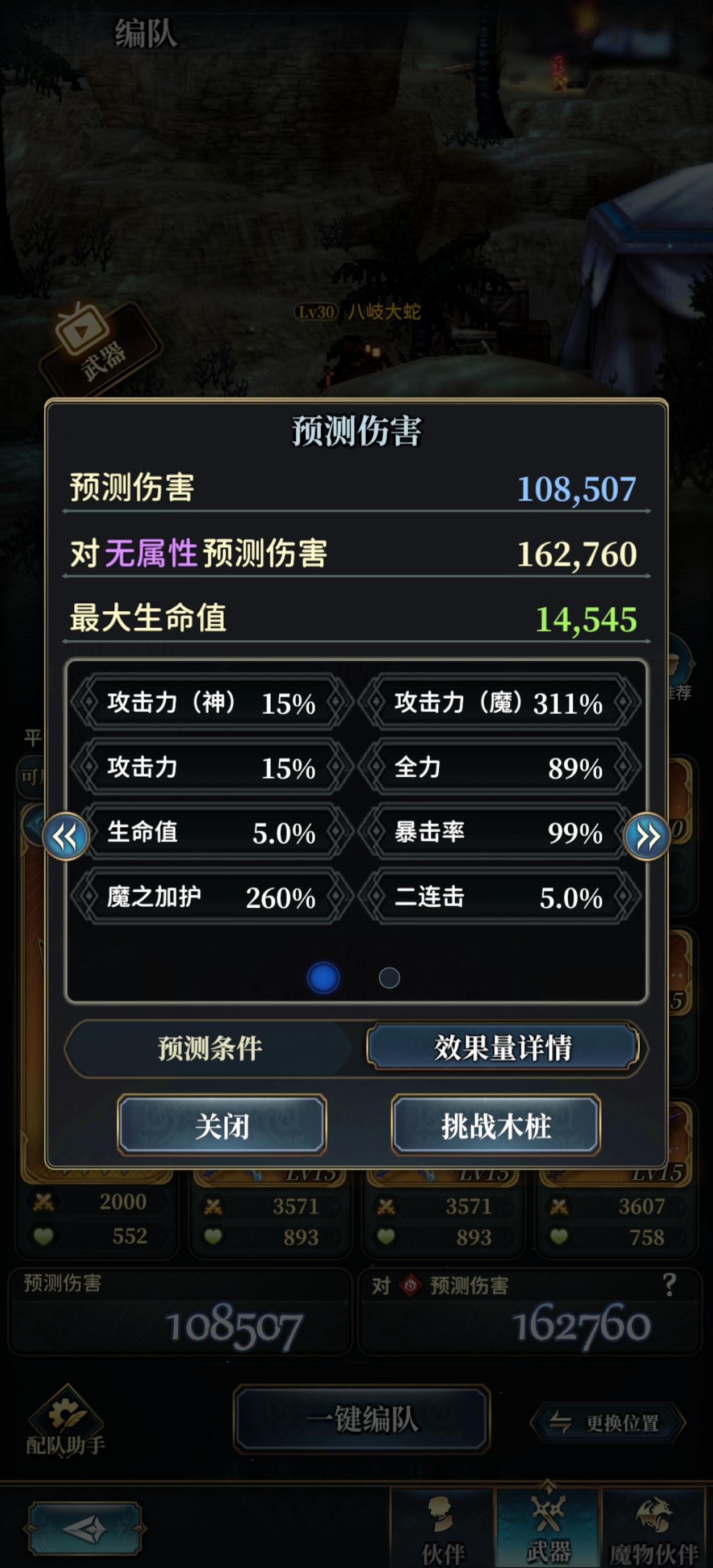3把0突破的水斧+1把满突破的弓,在双面鲸鱼的情况下已经接近满爆了。后面再慢慢突破斧子,3把斧子全部升到15级之后把弓踢掉就已经可以满暴击了。