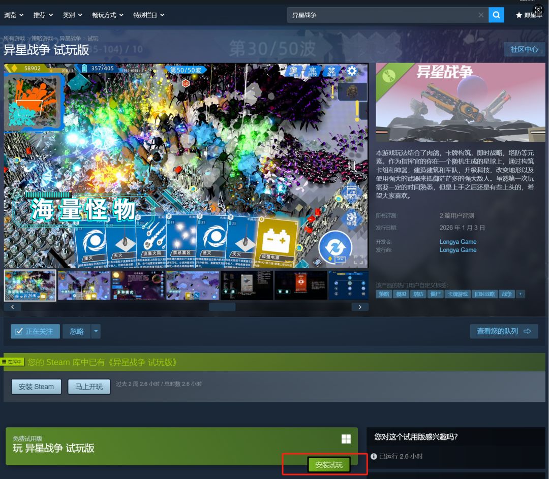 现在就上 Steam 搜《异星战争》或点击链接打开steam商店主页