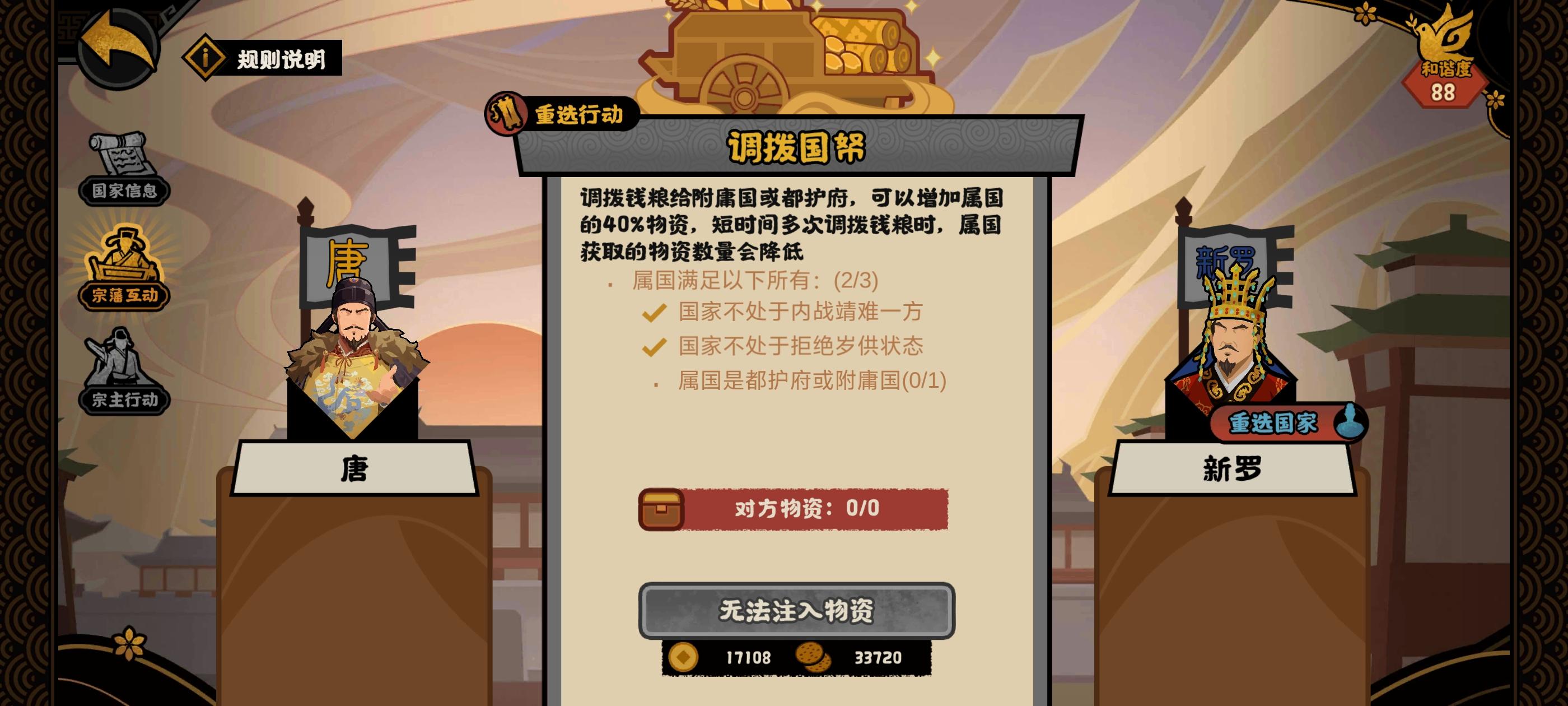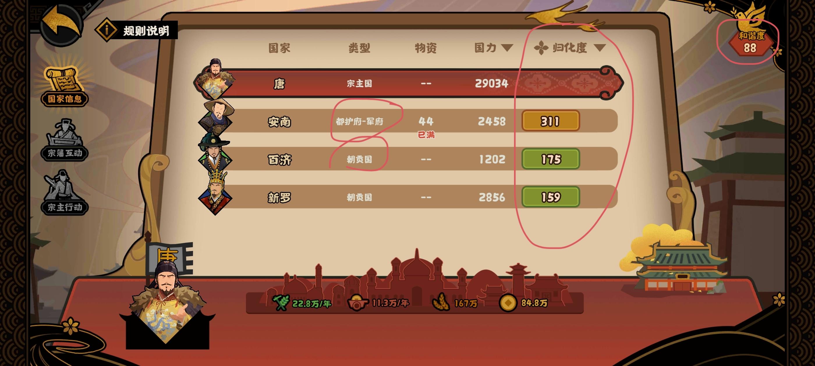 我基本之点两个,变更义务和调拨国帑。变更义务只能对都护府和附庸国用,朝贡→附庸→都护府,最快的方式是吃了拉出来,直接就是都护府。