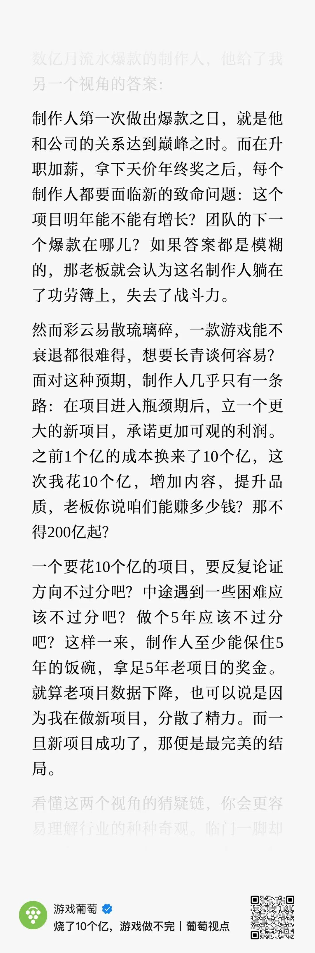 在之前的文章《烧了10个亿,游戏做不完》里,我们曾讨论过爆款制作人的困境: