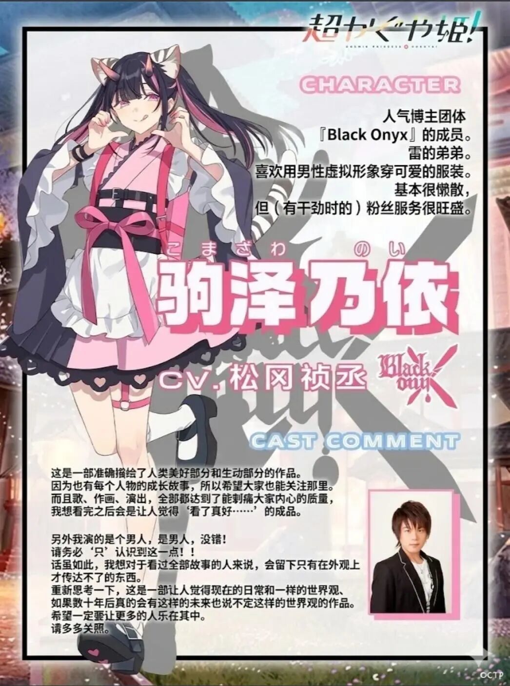 没错,松冈祯丞配的就是这个服装配色有点地雷系,还戴着猫耳的双马尾。另外眼尖的姬友应该也发现了,虽然这个角色怎么看都是个妹子但实际上他,没错就是“他”,是个男孩子。总而言之简单来说就是后宫王松冈这次配了个伪娘……