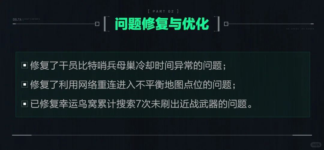 💡小提醒:更新期间不影响正常游玩,要是遇到黑屏、闪退或者音效异常的情况,重启游戏就能解决哦~同时修复了幸运鸟窝今天7次未刷出近战武器的bug,另外之前吐槽干员平衡和优化的宝子,也可以留意下这次更新后的体验有没有改善!#三角洲行动 #今天游戏圈发生了啥 #资讯评论员