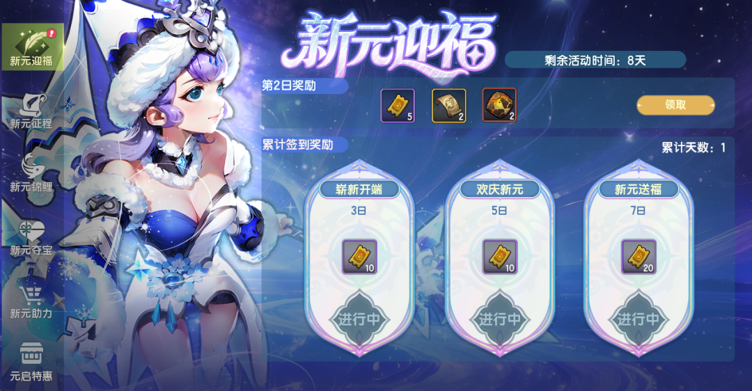 每日登录签到,即可直接领取新元庆典券*5,外加潜能原石、柏林的锻造券、净魂圣水、图鉴黄金宝箱等实用好物;累签3日解锁新元庆典券*10,累签5日再得10张,累签7日狂揽20张!每日动动手指,福利稳稳收入囊中,零门槛薅满开局福利!
