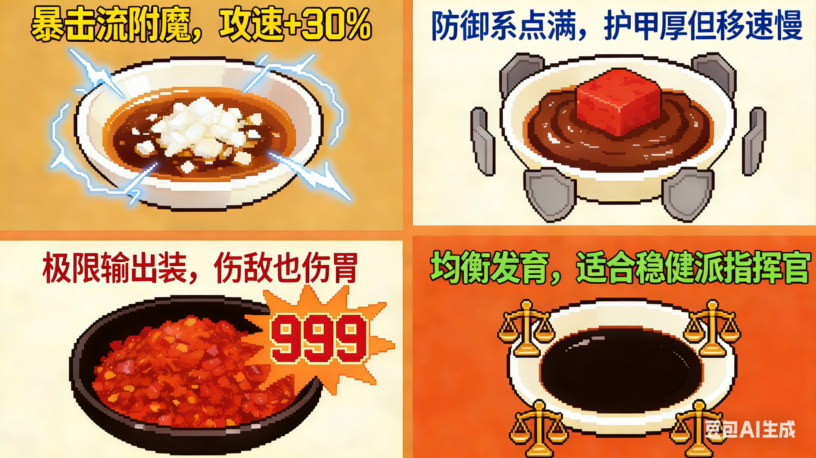 • 麻酱腐乳=防御系点满,护甲厚但移速慢