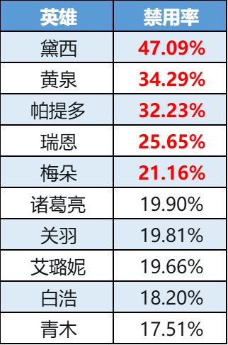 禁用率榜-黄泉空降小黑屋,梅朵排名上升
