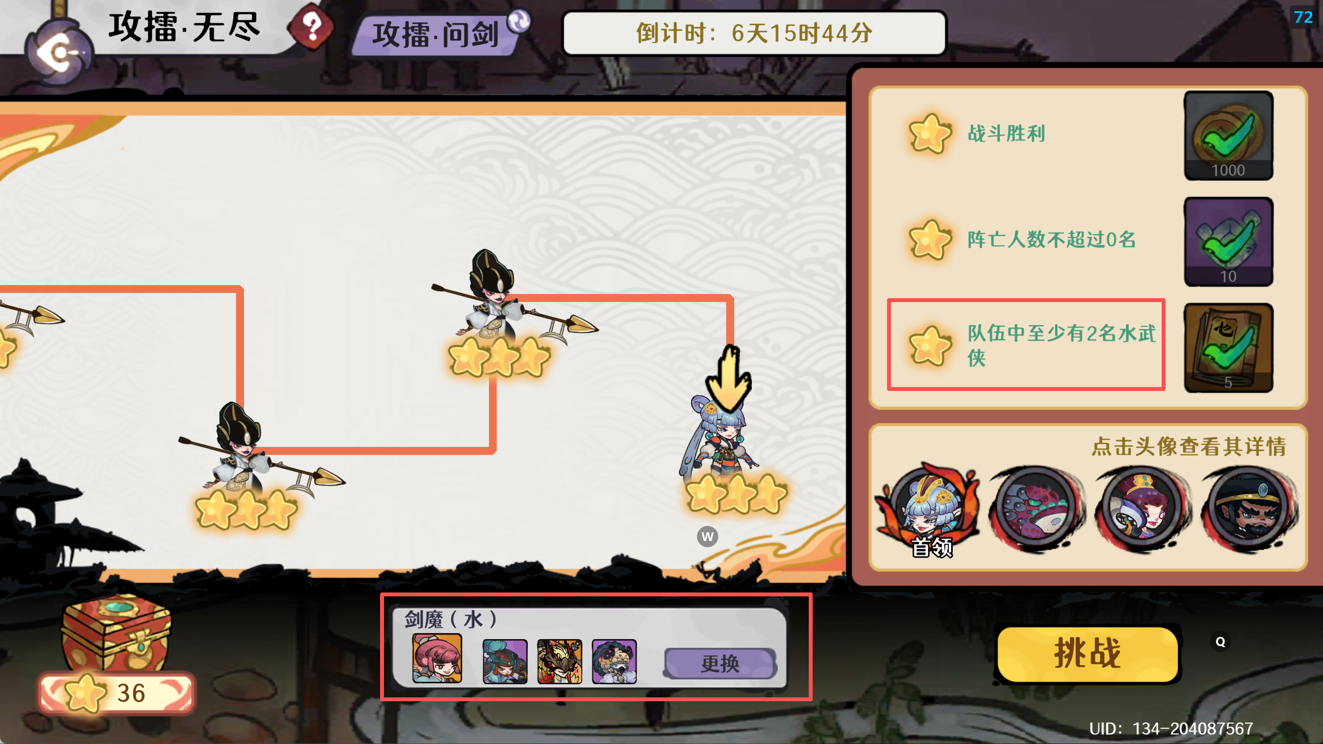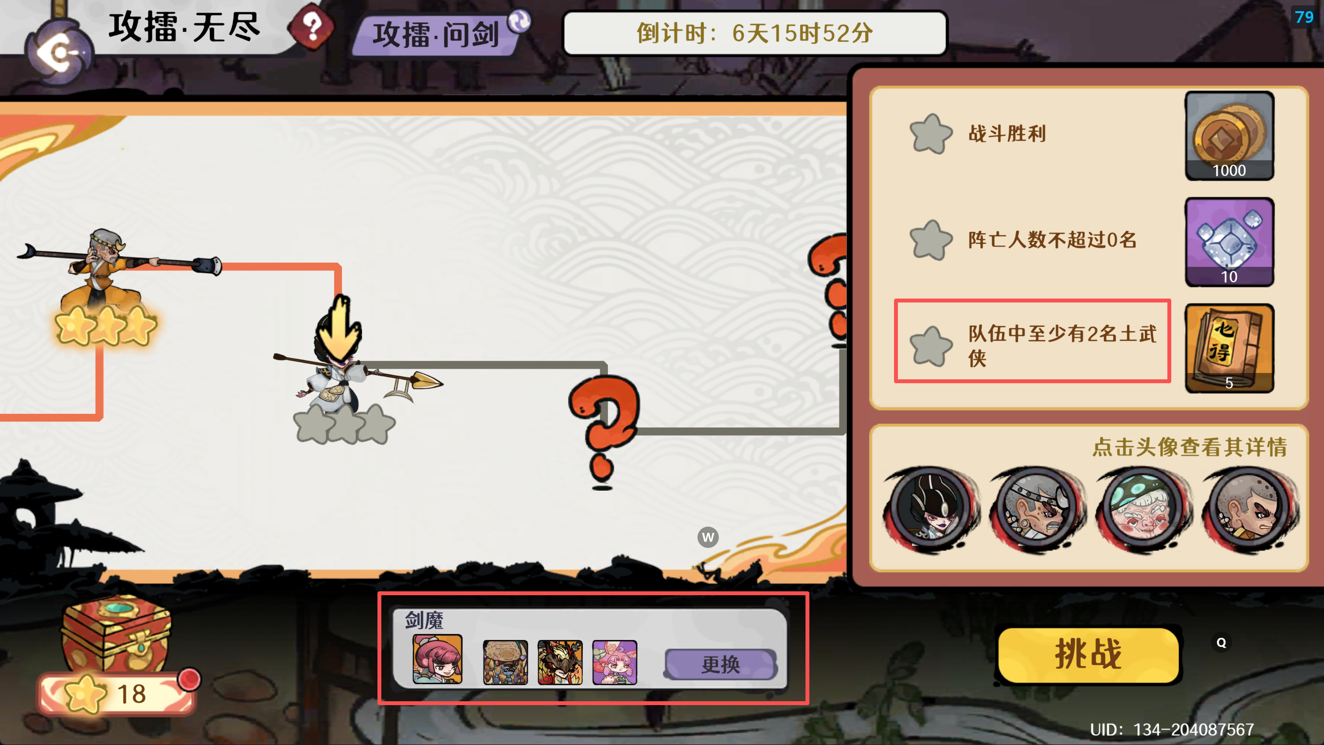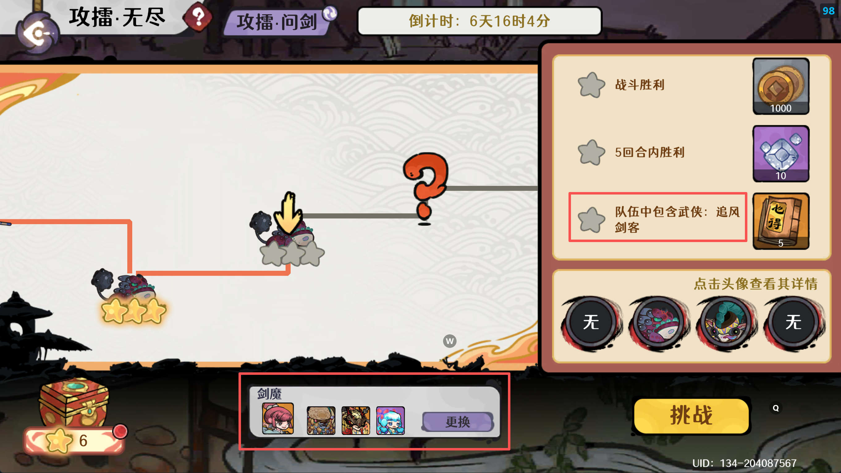 本周攻擂挑战,依然用自动剑魔体系变阵即可。