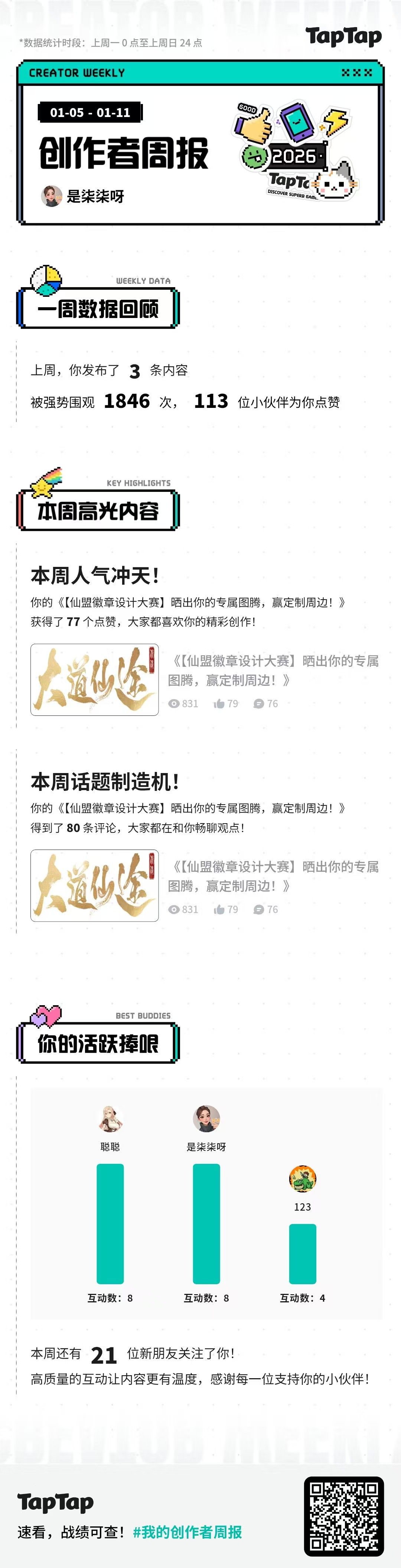 但我知道,它们背后不是一个统计结果,而是一个个坐在屏幕前,愿意为我们停留、抬手点赞、甚至打下几行字的身影。尤其是那条关于《仙盟徽章设计大赛》的召集。77个点赞和80条评论,对我而言,不是“本周高光内容”那么简单。那是77次无声的“有意思”,和80份宝贵的热情与创意。大家在评论区聊天的氛围,比任何数据都让我觉得,我们正在共同“养成”一些东西,而不仅仅是运营一个活动。