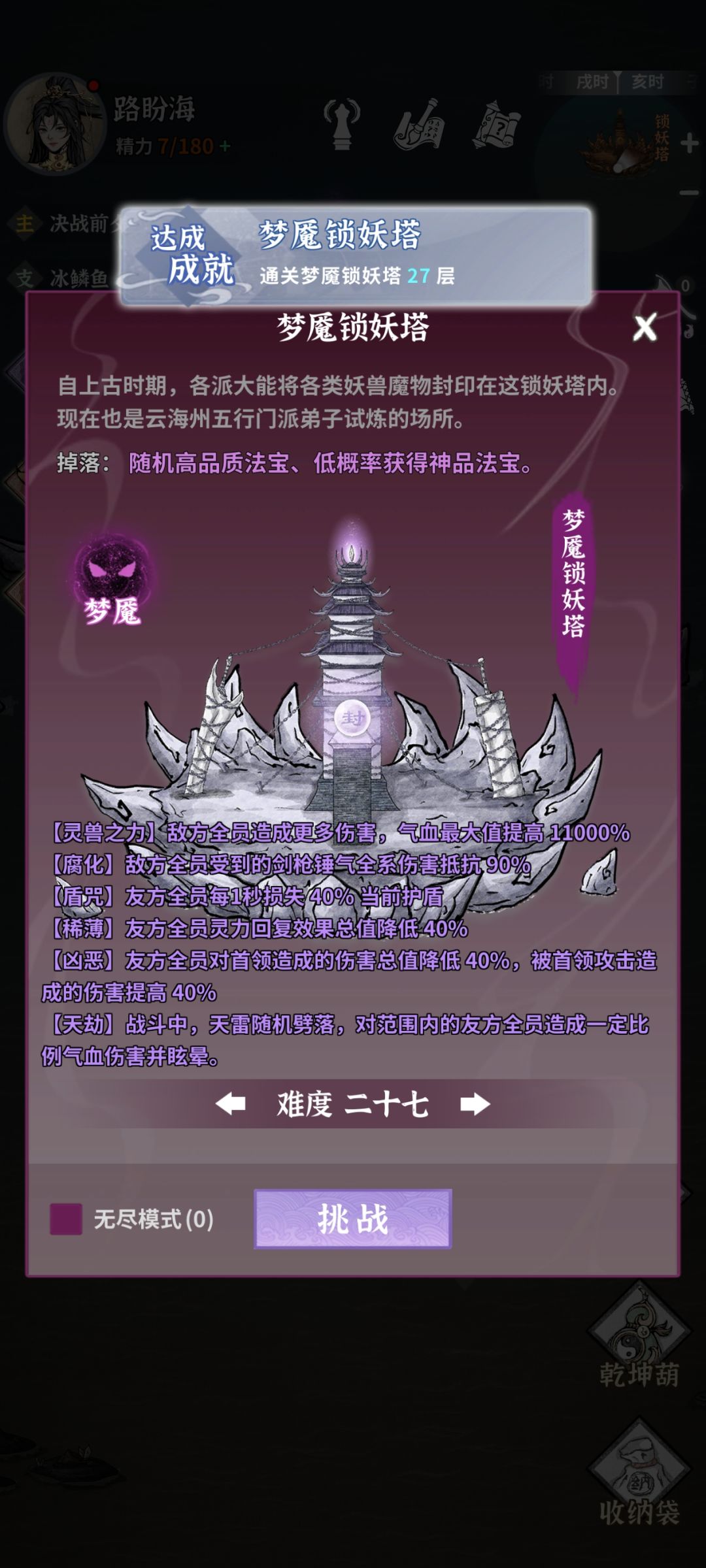 7.装备和灵石获取,主要是锁妖塔,因为可以无限刷,没用的装备可以卖大量灵石