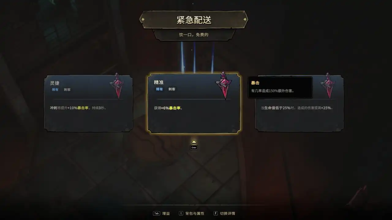 游戏局内的加成效果与角色相关性也比较高,比如从德拉斯基尔这个角色的技能就能看出这个角色定位属于近战刺客。在局内你就可以专门去选择刺客型加成,当加成达到一定程度,还会解锁特殊的增益效果。这也让玩家们在局内能够更有方向性的去选择流派。