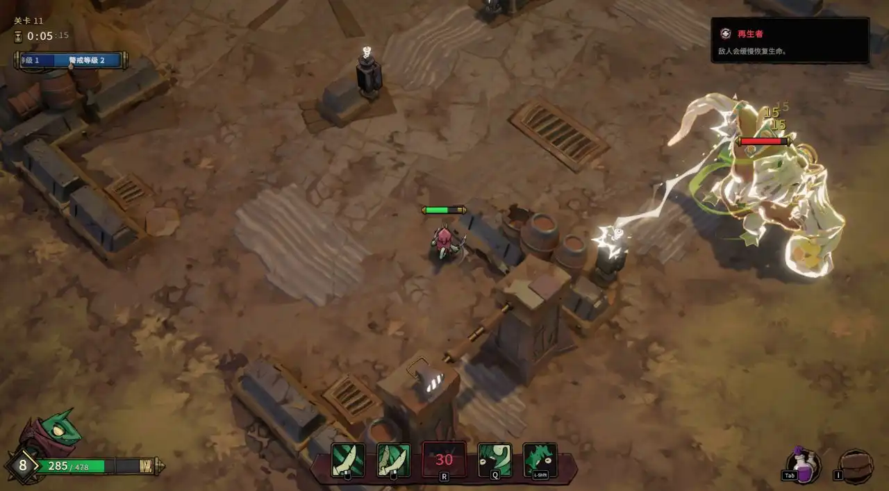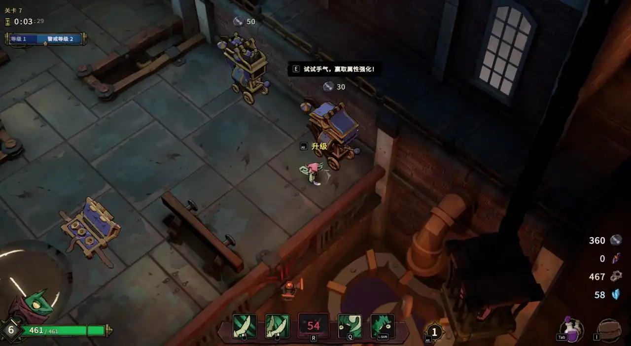 游戏在局内的警戒等级会随着时间逐渐增加,其机制与《雨中冒险》类似,也就是说想要更加轻松的通关游戏,就必须要速通,一旦在某一局耽误太多时间,到后面的boss关卡就越容易暴毙。