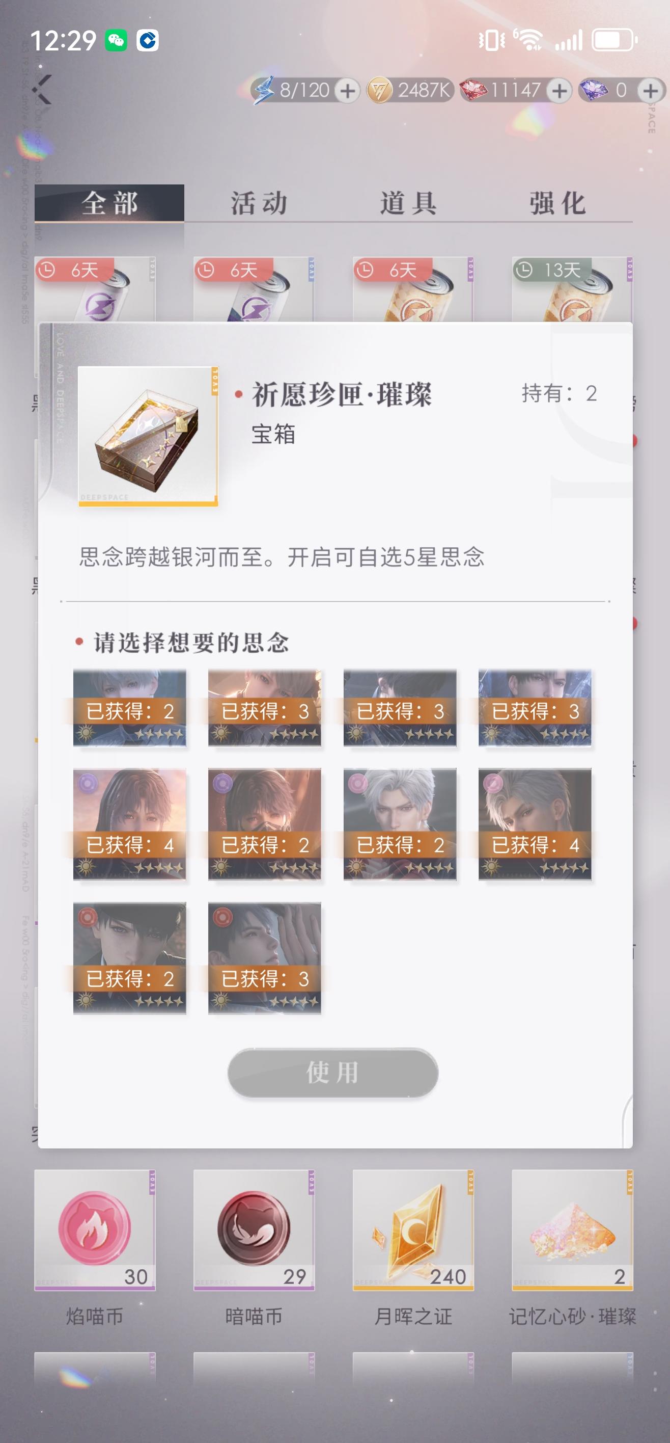 然后有意思的是,我是出一张秦彻,出一张其他人;出一张秦彻,出一张其他人!这是在拿秦彻当逗号使嘛?👻不过幸运的是,没有卡溢出,开完盒子,目前我所有的常驻日卡都叠到双一阶了。