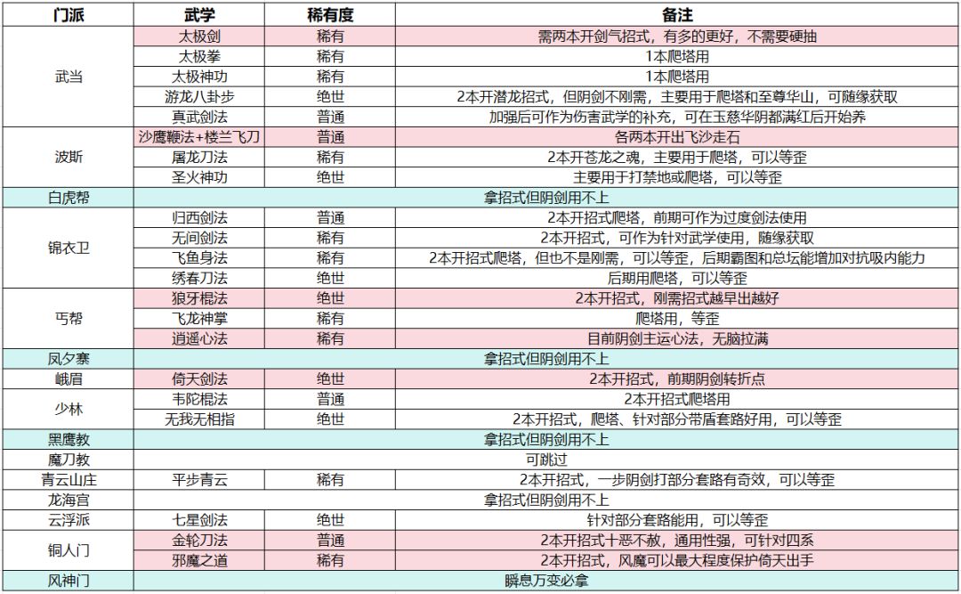 二、门派招式获取推荐