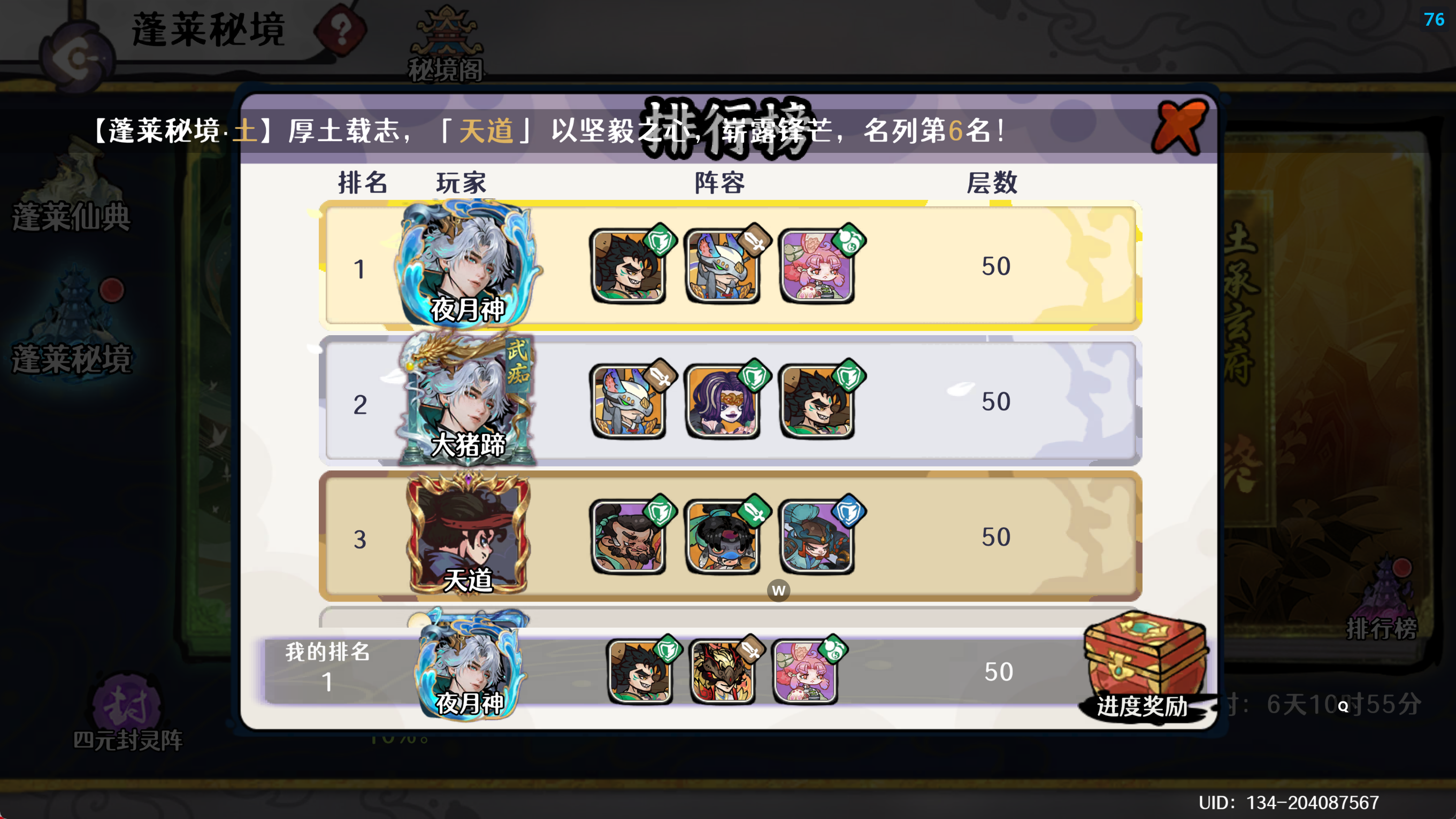 【蓬莱秘境】全系50层首通完成!(含四队攻略合集)