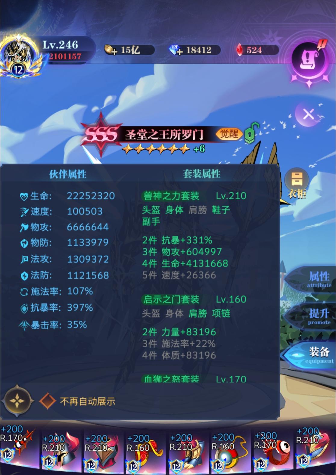 属性方面,除了百施法,百暴也是必要的,因为奶可以暴击,高额治疗可以更早叠满所罗门的攻击,以提升胜率。