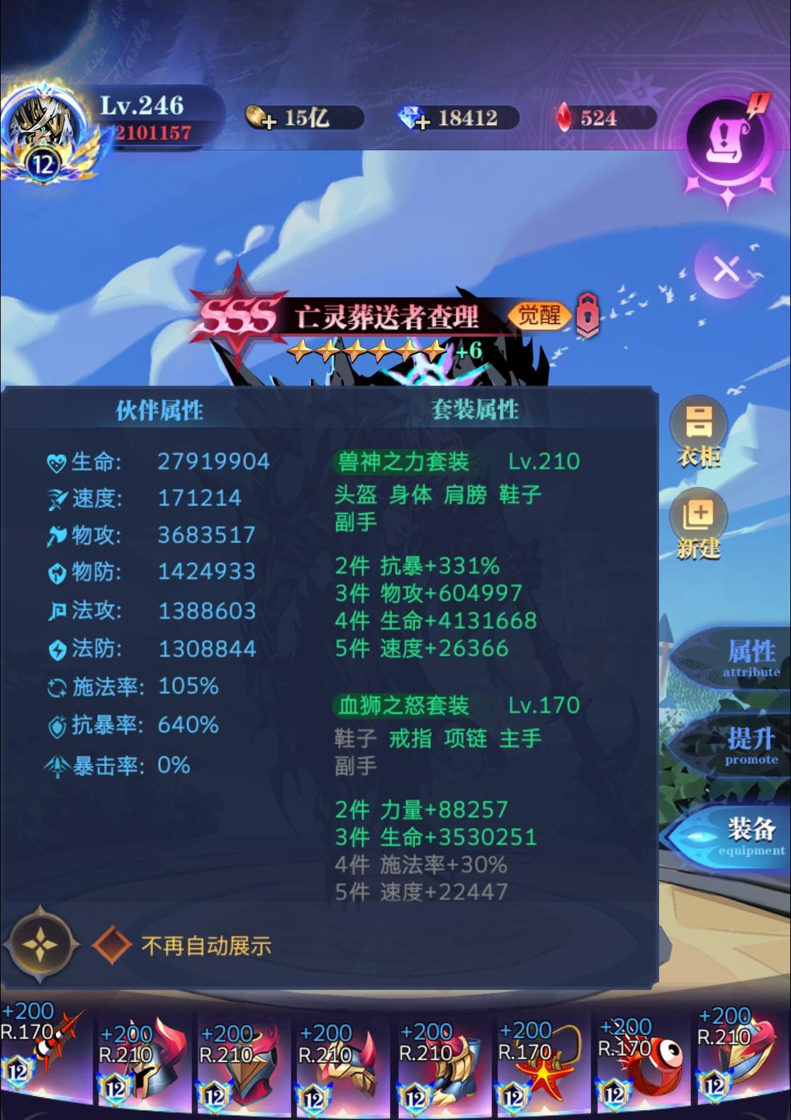 ②查理:神器2抗暴2物攻,药剂优先吃体质、力量、敏捷、韧性。