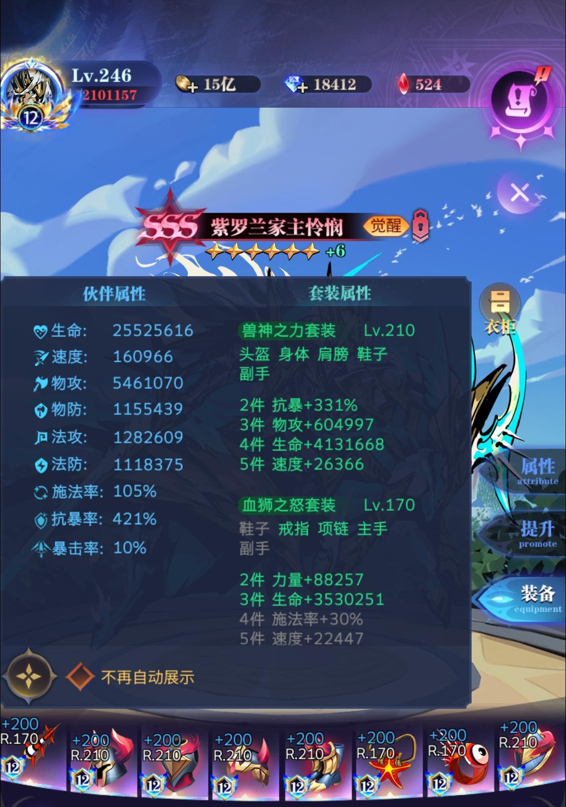如图4,经过多套装备的对比,最后选择的怜悯装备为5兽神3血狮。