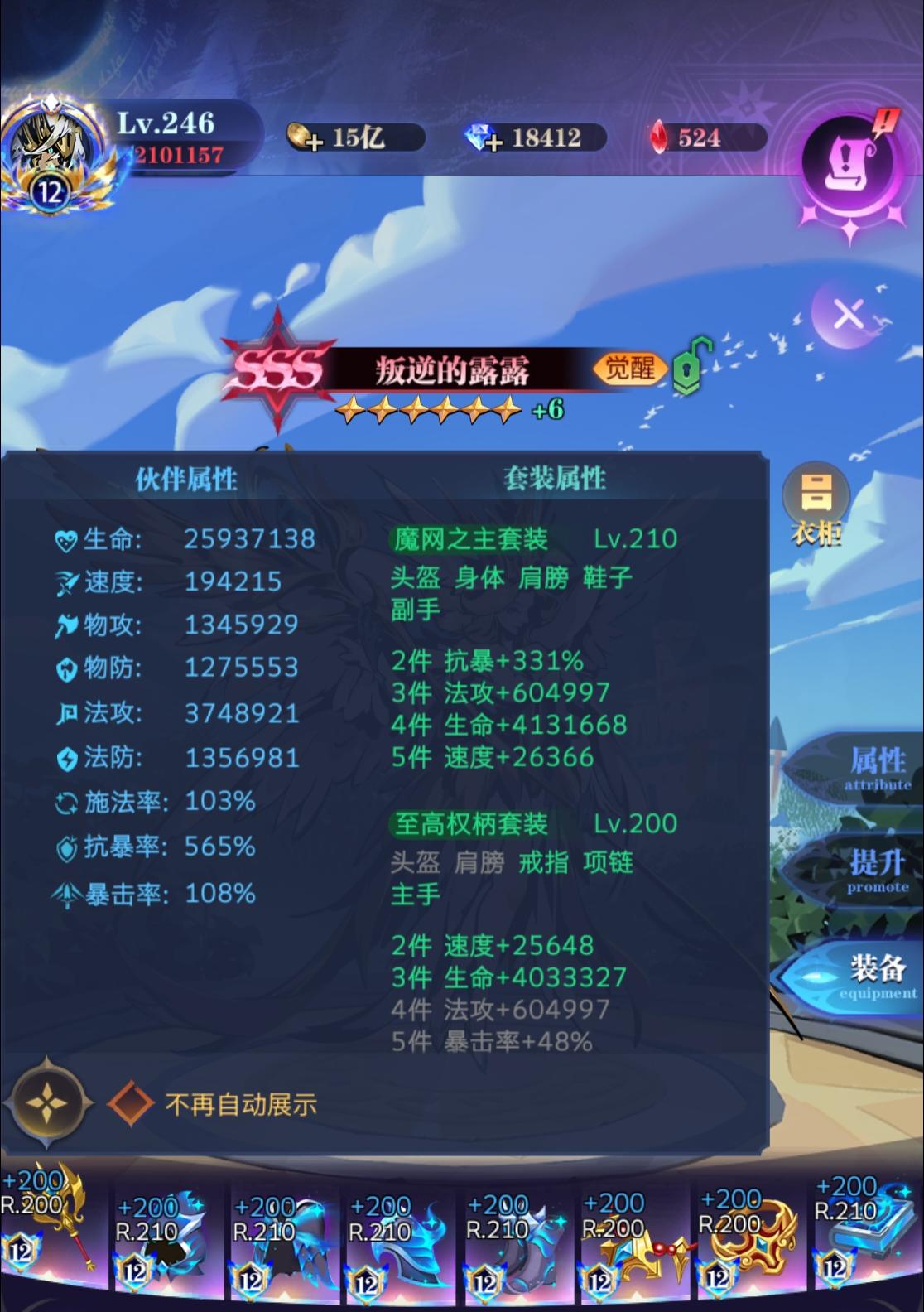 ①露露:神器2抗暴2法攻,药剂优先吃智力、敏捷、体质。