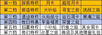 第三档:遗迹特权、头衔战令、钻石周卡、黑潮之路