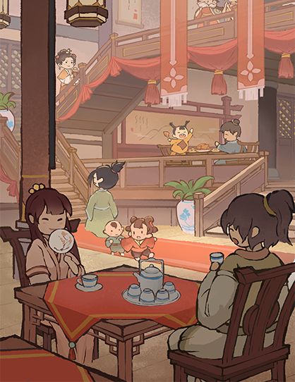 吃饱喝足之后,还可以来点精神食粮!不远处就是鹤州最大的书城,这里不仅有话本小说,还有各行各业的经营秘籍。如果逛累了,还可以到二楼享用精致下午茶,简直是幸福的午后时光呀~